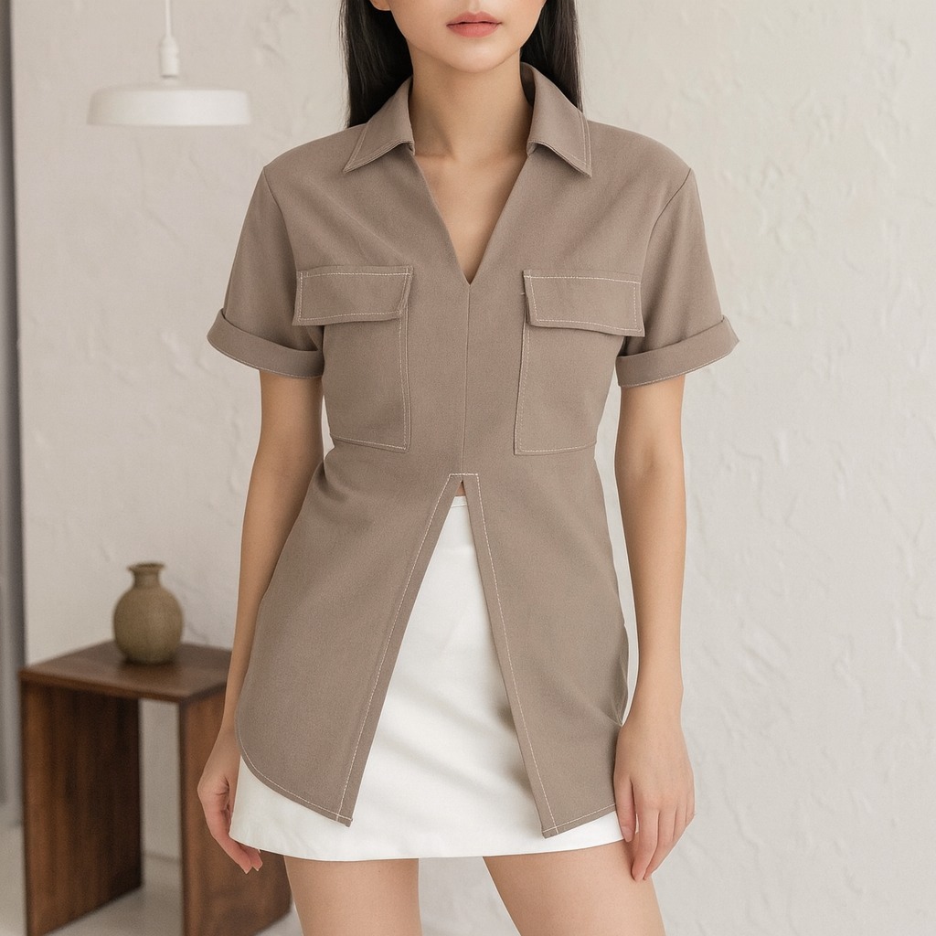 Vallina Outfit - Nikita Blouse Atasan Wanita Matt Katun Linen l Lengan Pendek OOTD Korean Style Casual Daily