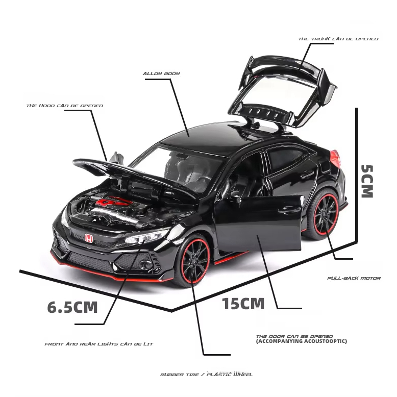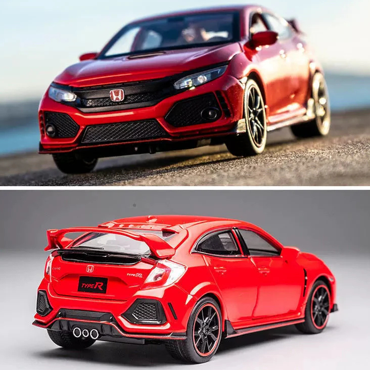 Honda Civic Type R Mugen 1:32 Koleksi Diecast Miniatur Pajangan Mainan Mobil Sport Alloy Car Merah