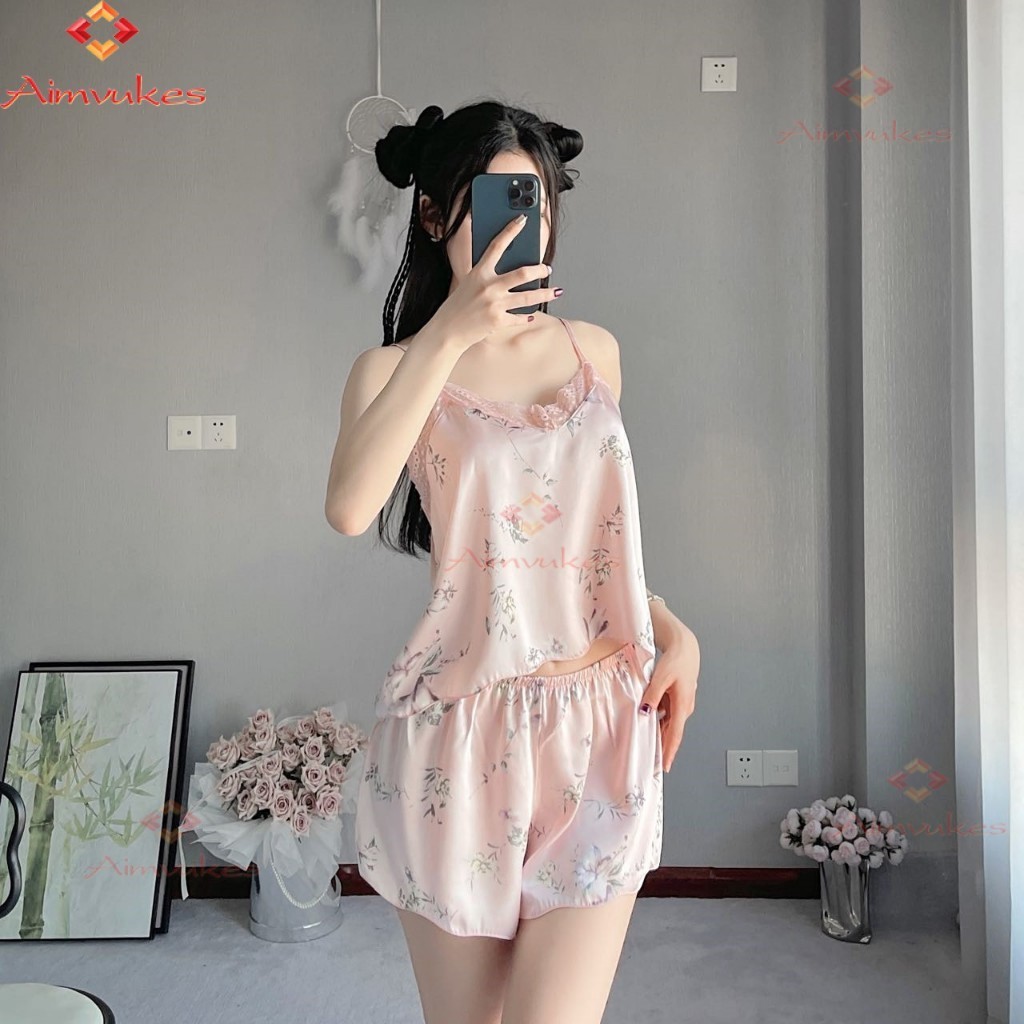 AIMVUKES-- Setelan Baju Tidur Sexy Wanita Bahan Satin Premium Sleepwear Pajamas