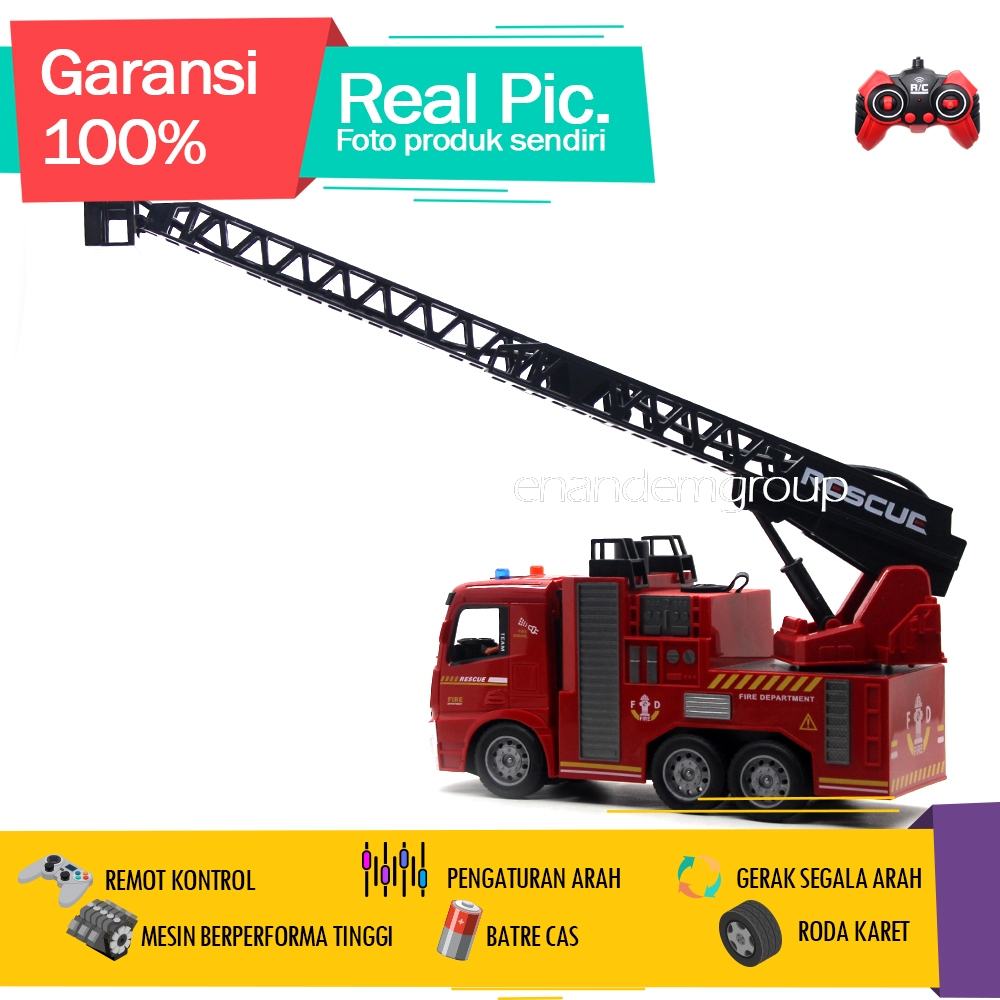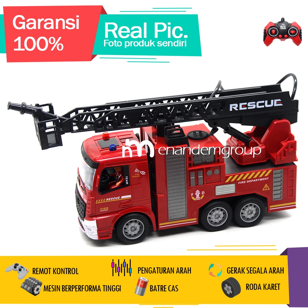 Mainan Mobil Remot Kontrol RC Truk Pemadam Kebakaran Semprot Premium Sirine LED