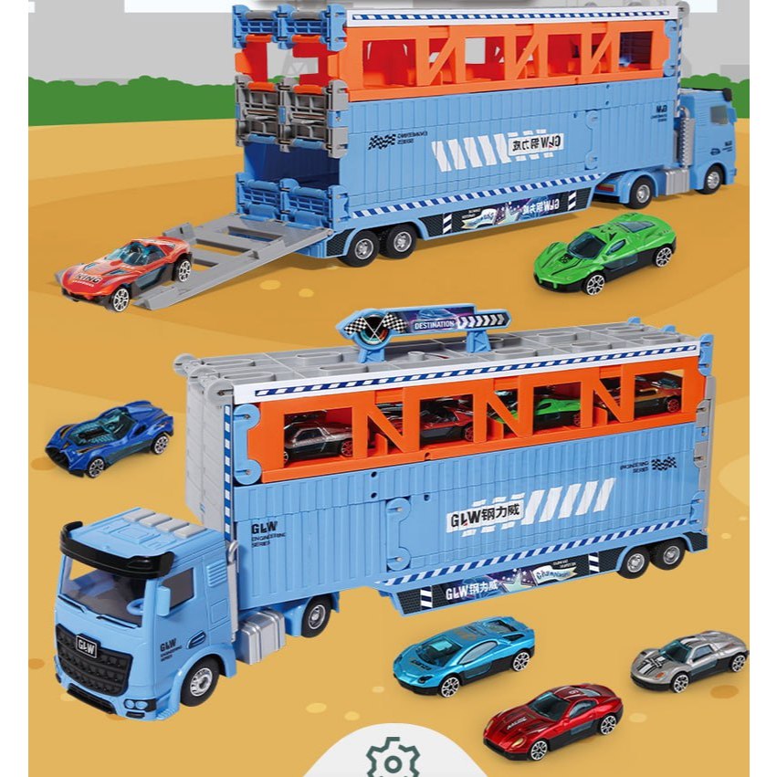 [capt] Mainan Mobil Mobilan Truk & Mobil Jeep Deformasi Rel Balap Mobil - Truck Container Catapult & Dream Car