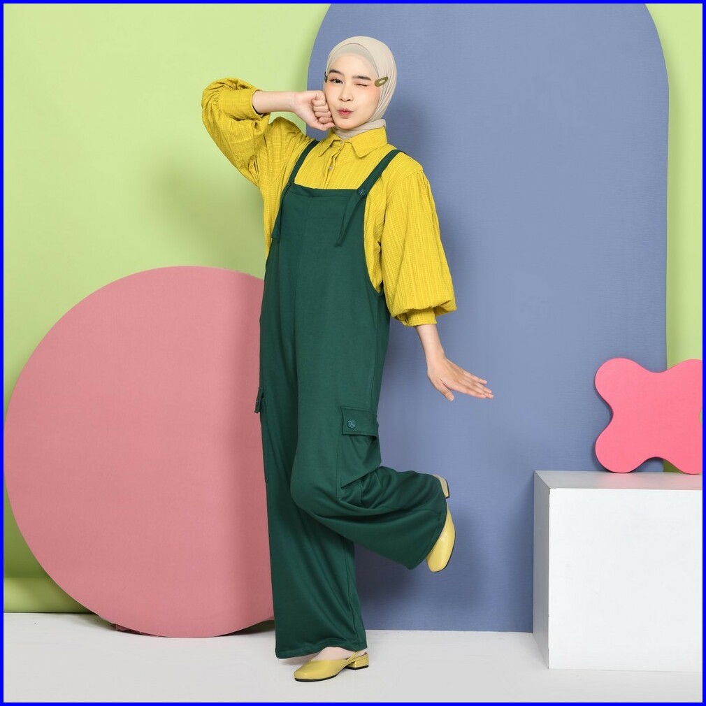 Mybamus Thara Loose Overall Cargo - Jumpsuit Muslim - Baju Kodok Korea - Jumpsuit Kulot Kargo