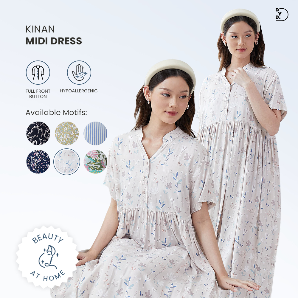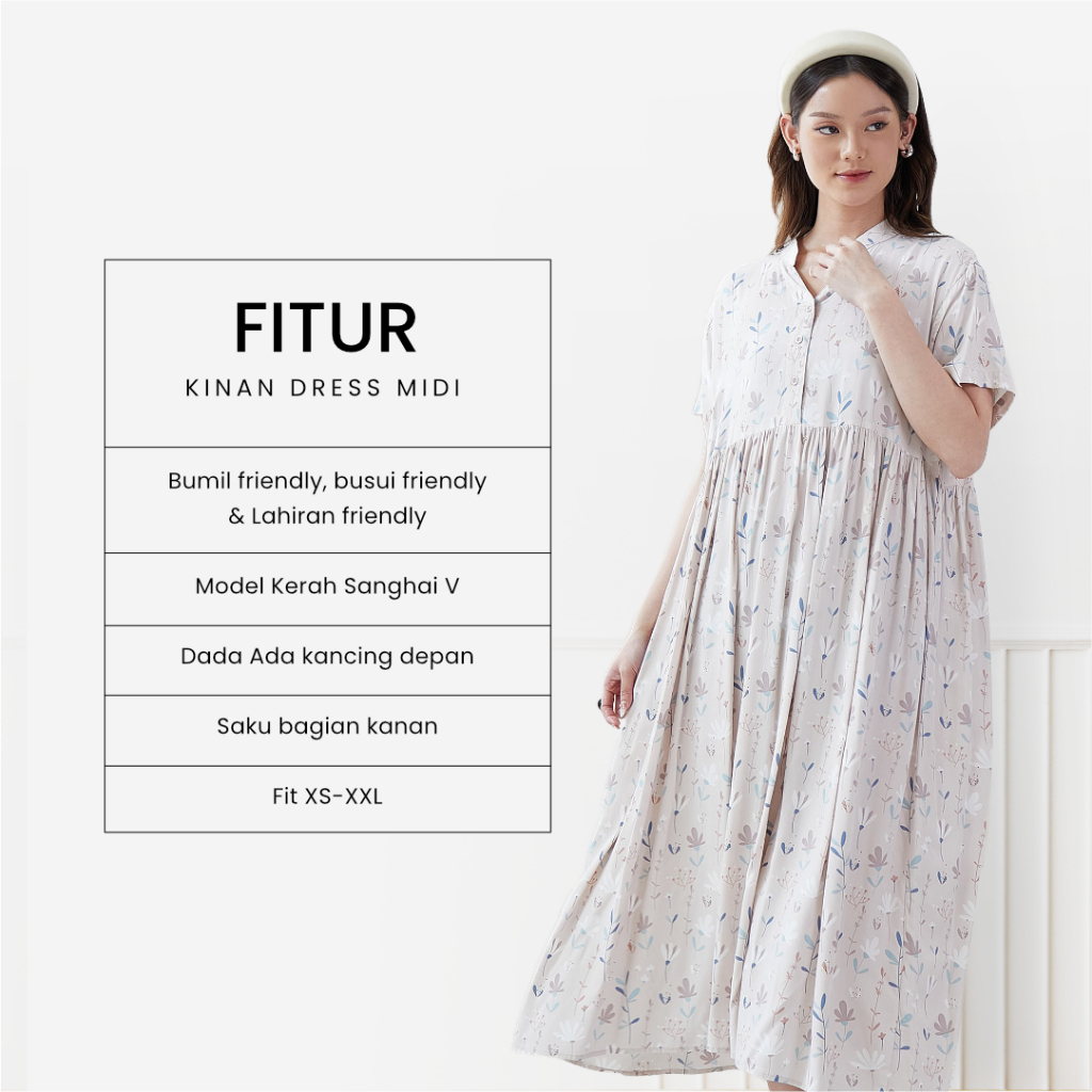 DYD LABEL Kinan Midi Dress Wanita Sematakaki Bahan Rayon Fit to XL Baju Bumil Busui Kancing Depan
