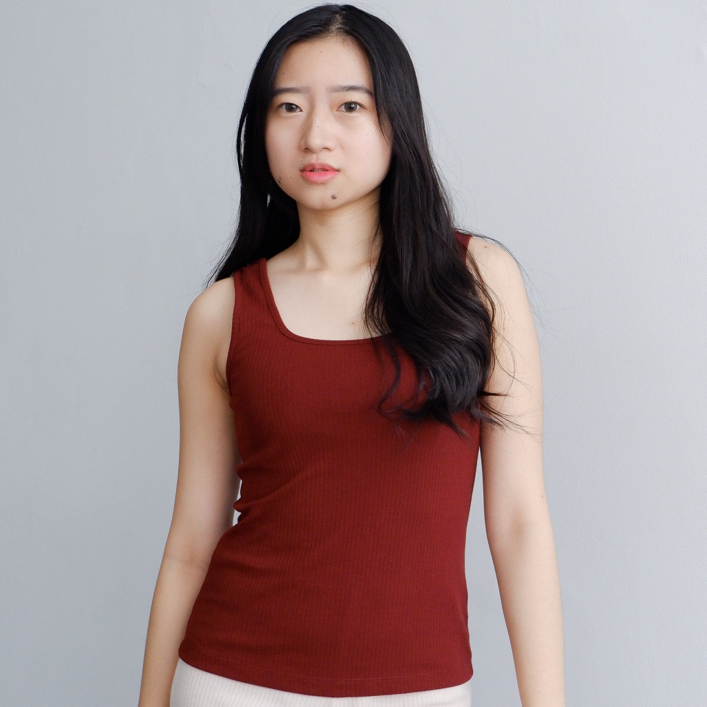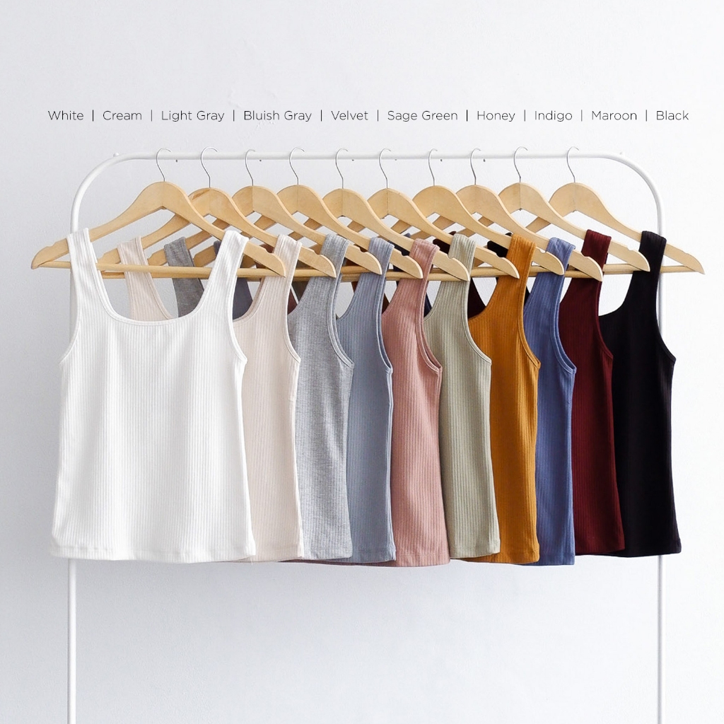 Isla Basic Tanktop Thick Strap Square Neck Stretch - Tanktop Kekinian - Pakaian Wanita - Inner - Singlet - Tank top