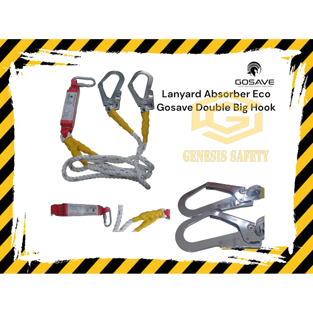 Lanyard Safety Absorber Eco Double Big Hook With Carabinner Harness Safety Belt 2 Hook Besar GOSAVE