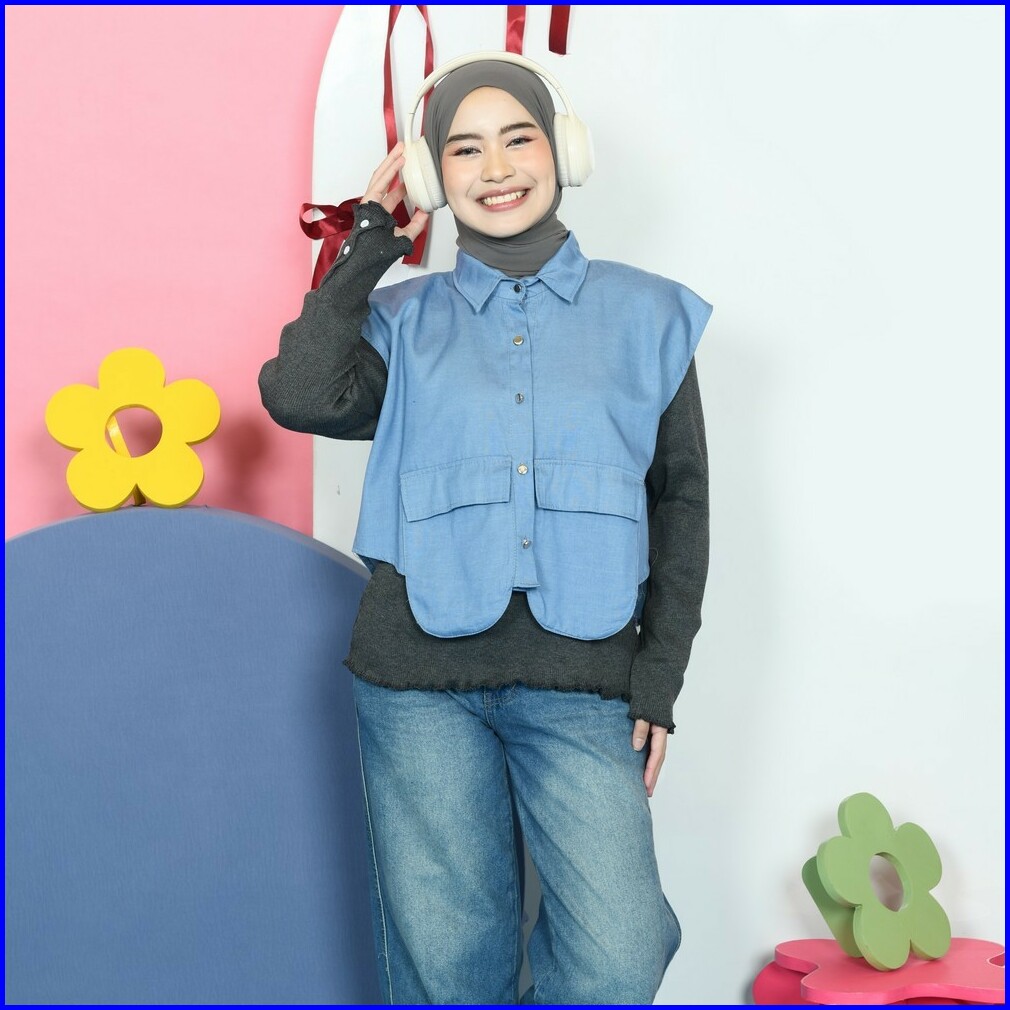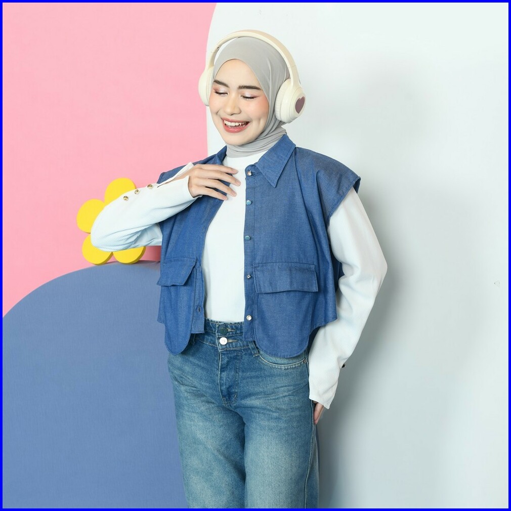 Mybamus Mozy Denim Crop Vest Outer Basic Jeans Kekinian