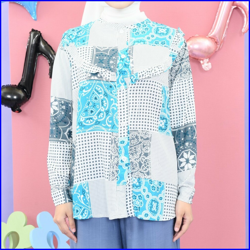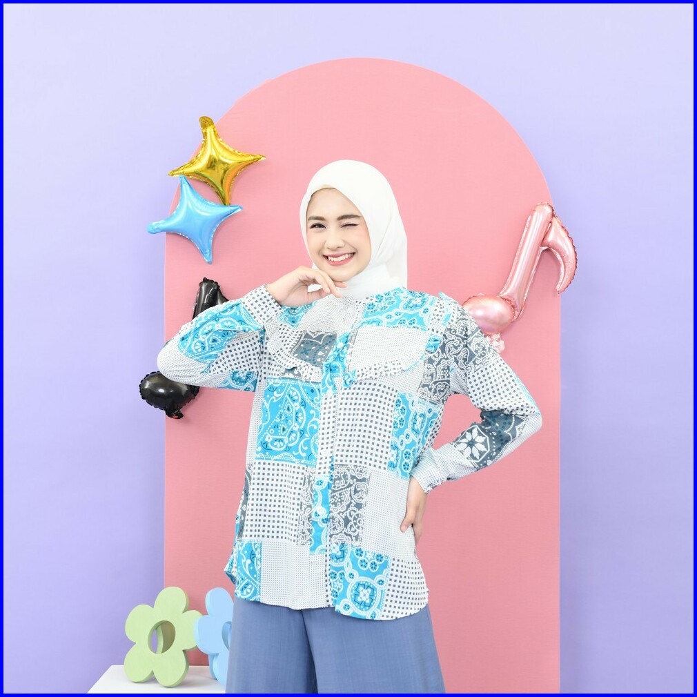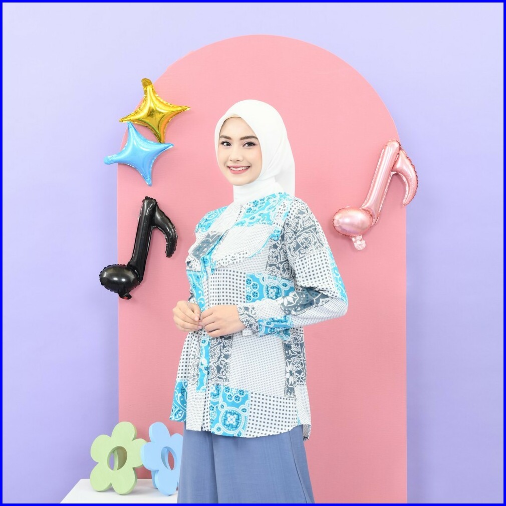 Mybamus Ekavira Wringkle Soft Blue-white M16171 R43s3 - Atasan Muslim
