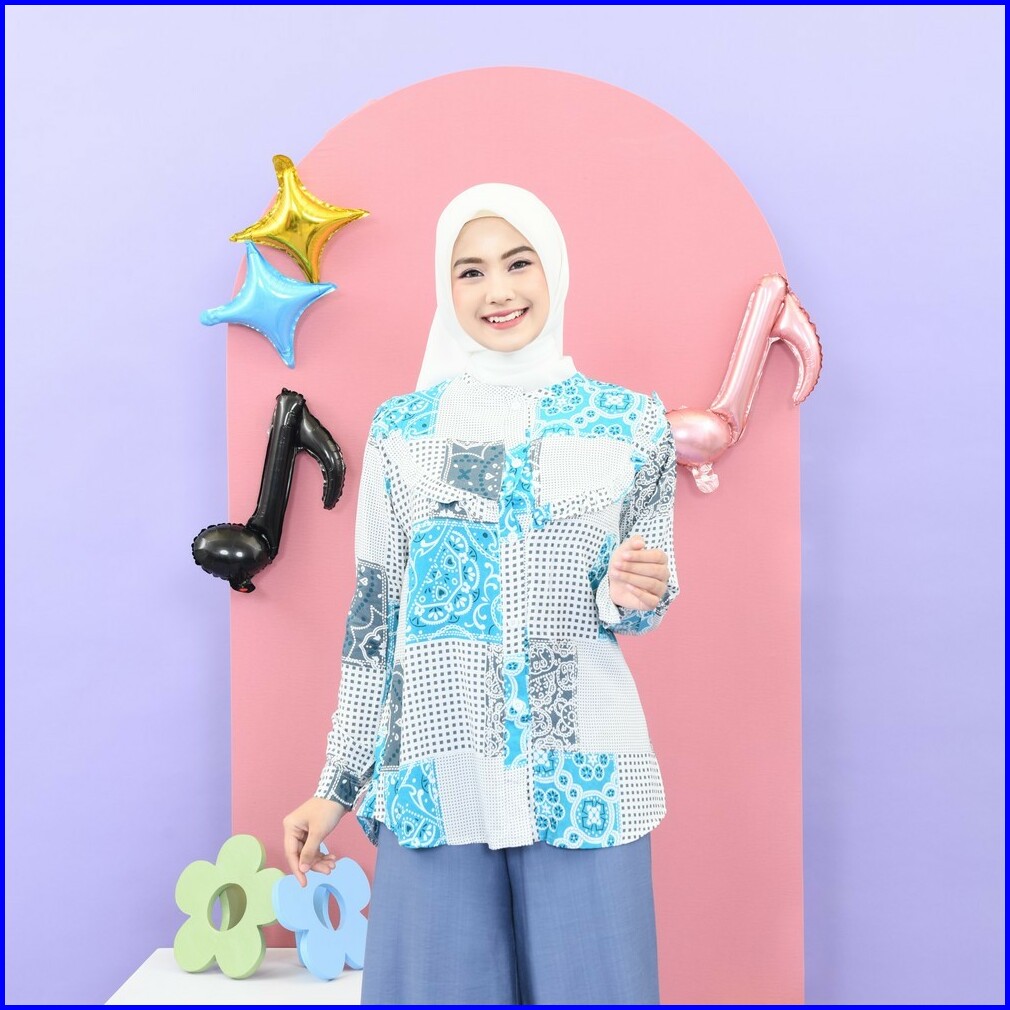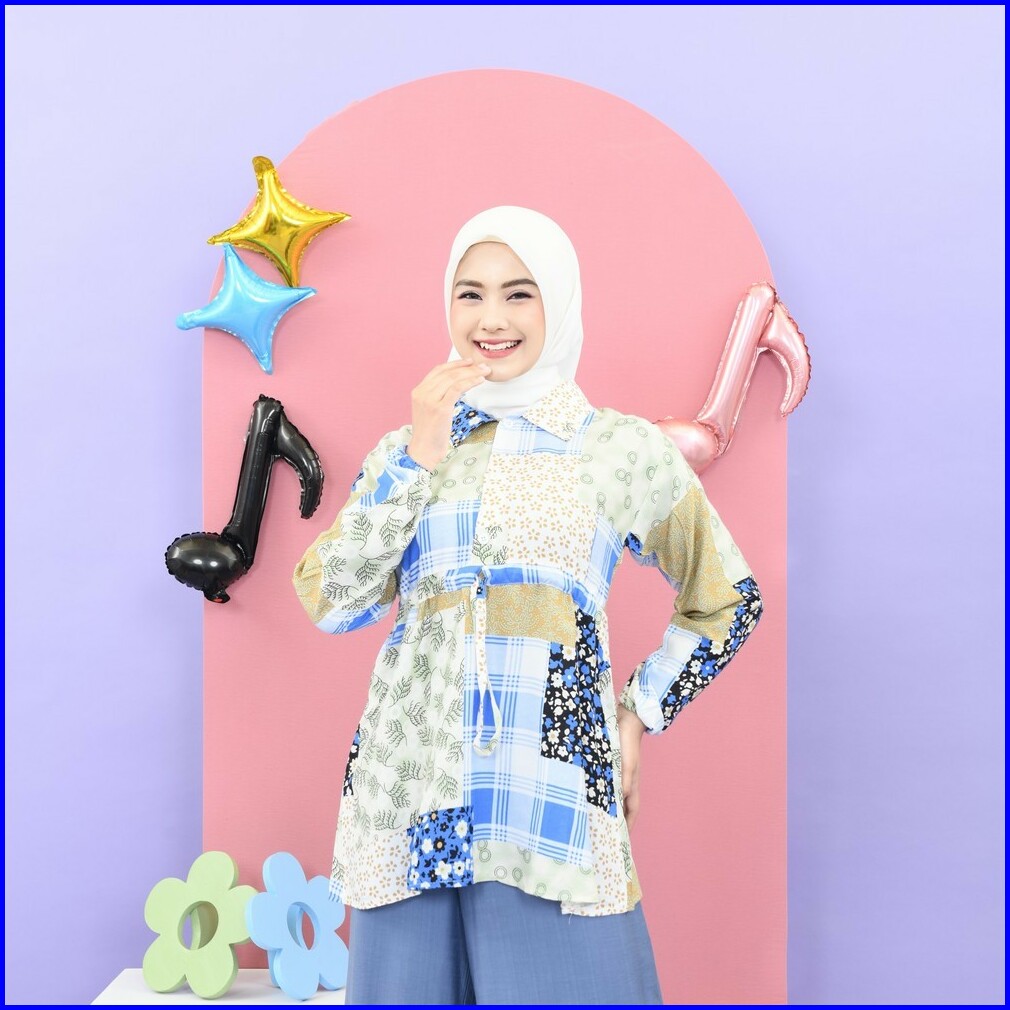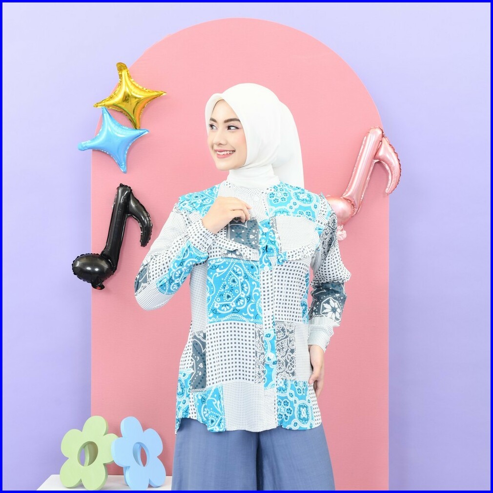 Mybamus Ekavira Wringkle Soft Blue-white M16171 R43s3 - Atasan Muslim