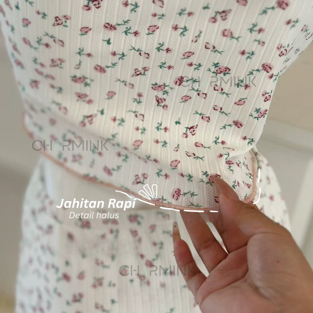 CHARMINK Piyama Wanita Setelan Tank Top & Celana Pendek Motif Bunga dengan Bra Pad – Baju Tidur Sexy Nyaman & Stylish