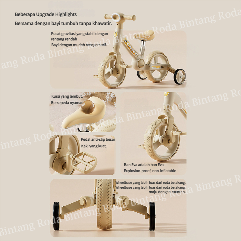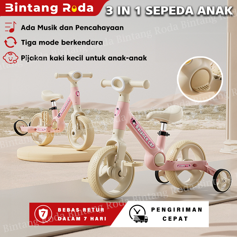 【Stok Lokal】Sepeda Anak 3 in 1 Bayi | Sepeda Roda Tiga + Balance Bike | Sepeda Kayuh dengan Musik & Lampu LED | Hadiah