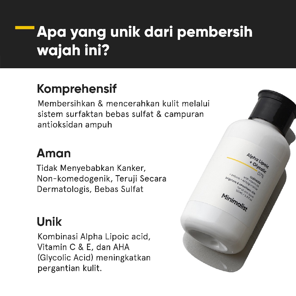 Minimalist 7% Alpha Lipoic + Glycolic Cleanser | Brightening Facial Wash | 100ML