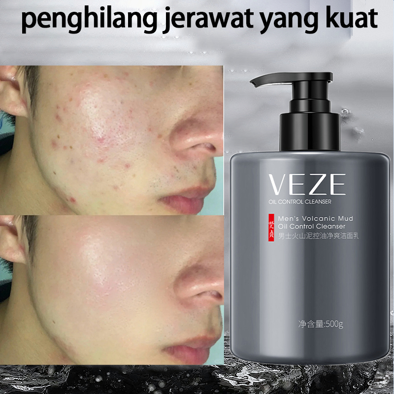 Sabun cuci muka pria dengan lumpur vulkanik menghilangkan jerawat 500g Pembersih wajah mengontrol