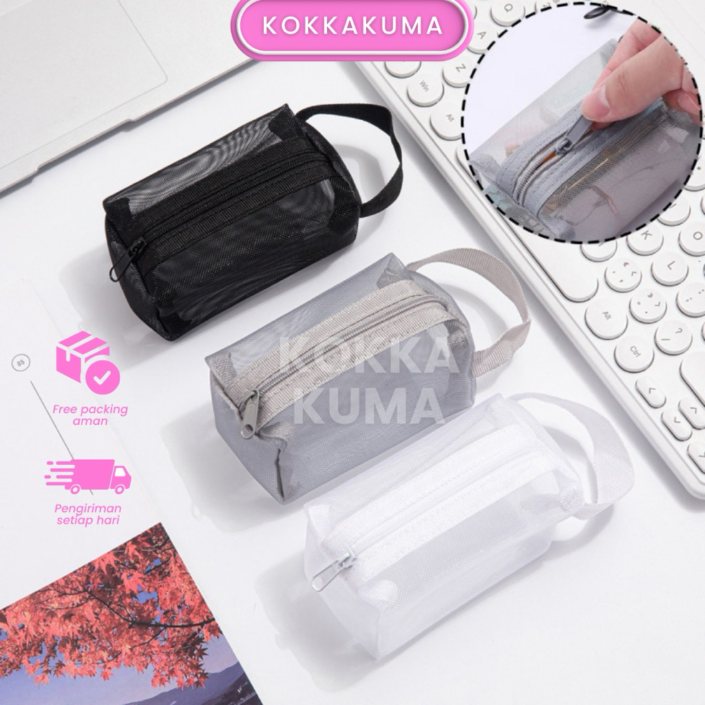 ( KKM ) AB174 Tas Pouch Makeup Mini Jaring Pouch Transparant Dompet Kosmetik Simple Lucu Serbaguna Wadah Makeup Tas Jaring Make Up Resleting Transparan bisa