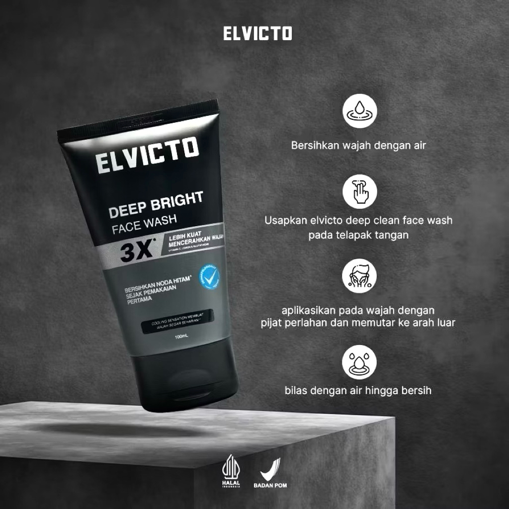 PERAWATAN WAJAH PRIA ELVICTO DEEP BRIGHT FACE WASH ORIGINAL PRODUCT BPOM MENCERAHKAN MENGANGKAT NODA HITAM DAN MEMBERSIH