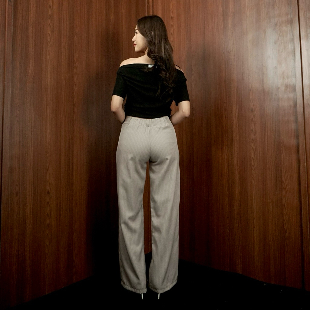 Celana Kulot Wanita Terbaru Casual Tipis Panjang Motif Garis Kulot Pinstripe Karet Lembut Loose