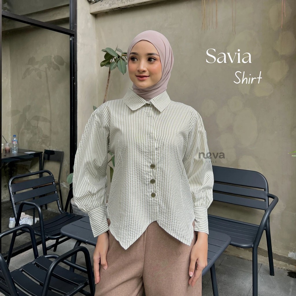 Neva Style - Savia Shirt Kemeja Wispie Sanju Blouse Stripe Fit Body_Atasan Cantik OOTD Korean Style