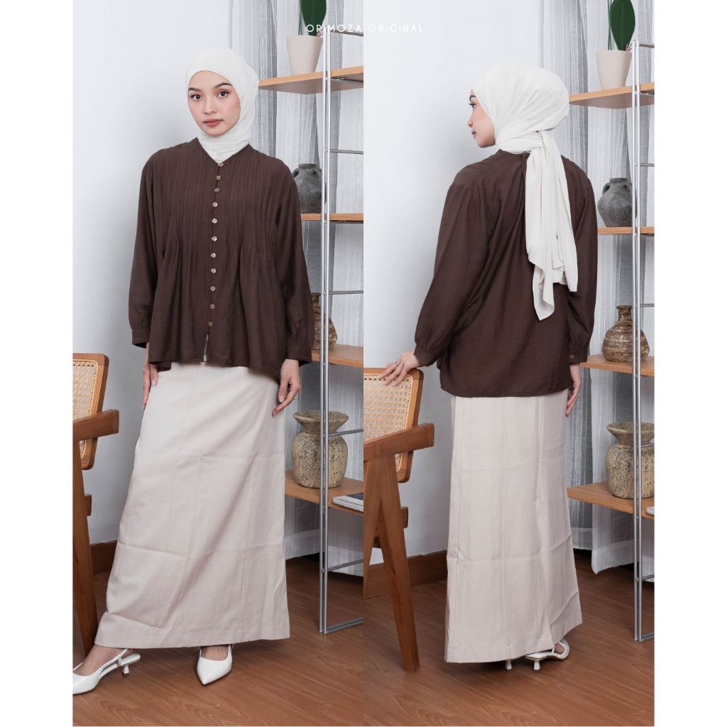 Orimoza Selena Blouse Rempel Wanita bahan Polo Linen