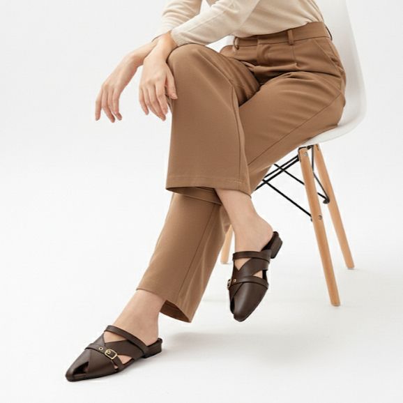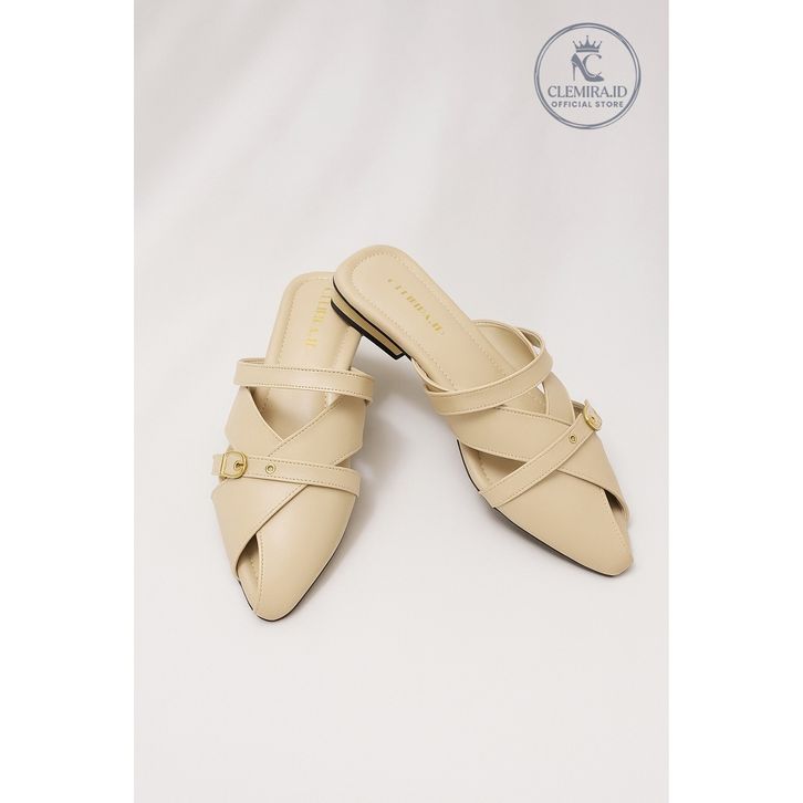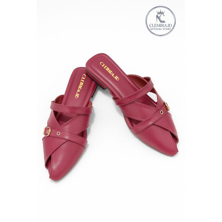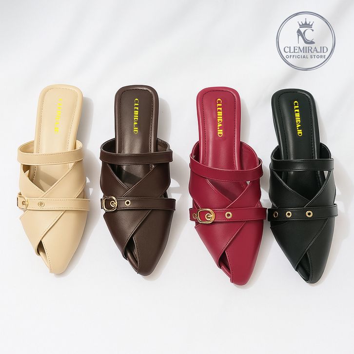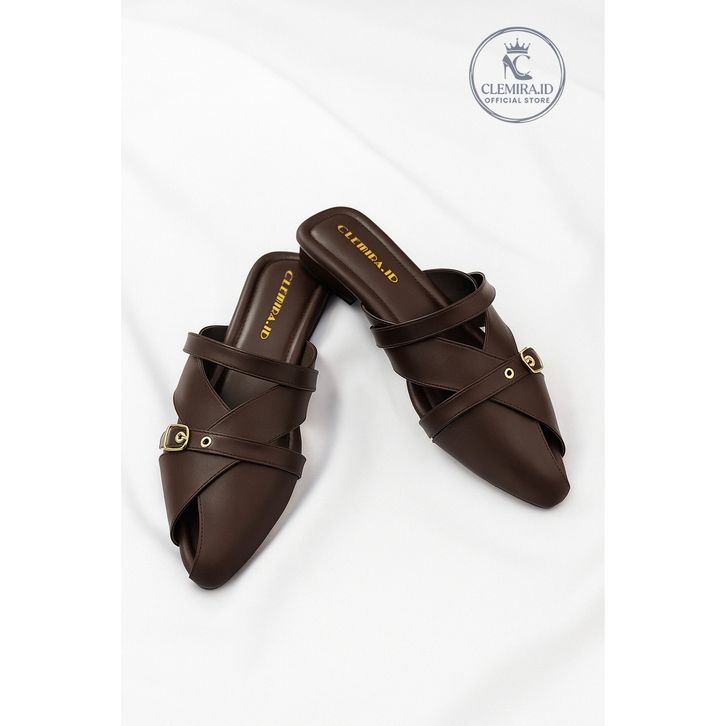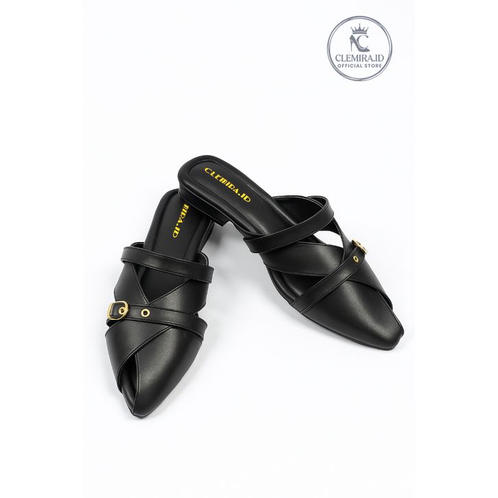 Sandal Wanita Kekinian Clemira Sandal Mules Wanita Kekinian Cross Strap dengan hak 2 cm Anti Slip Nyaman & Elegan