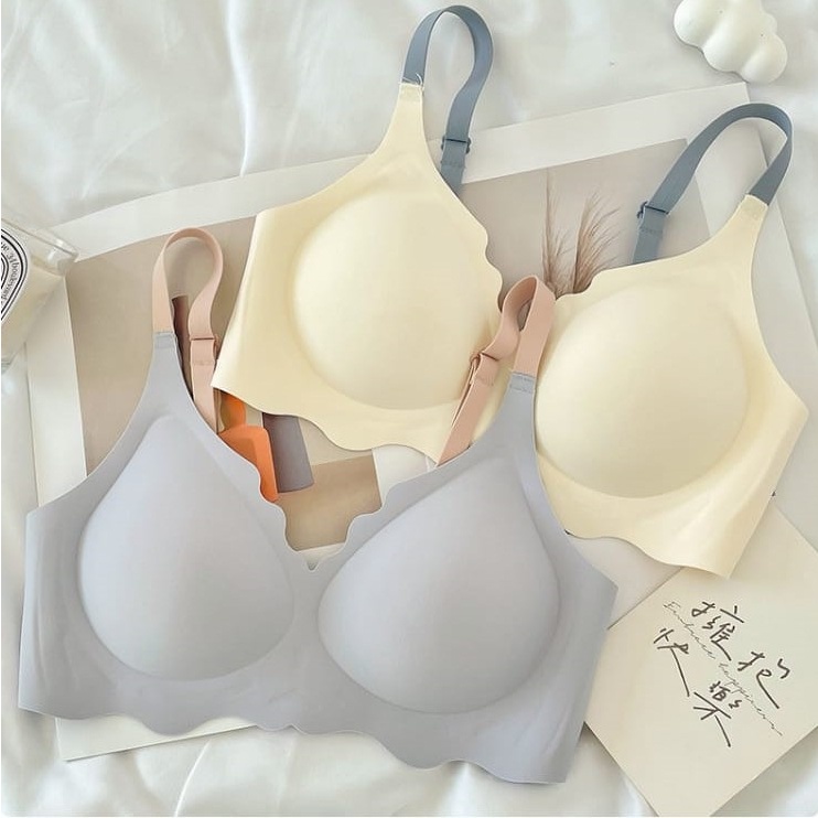Brasay Bra Fashion Seamless Wanita Full Cup Motif Gelombang Polos Tali Adjust 9054