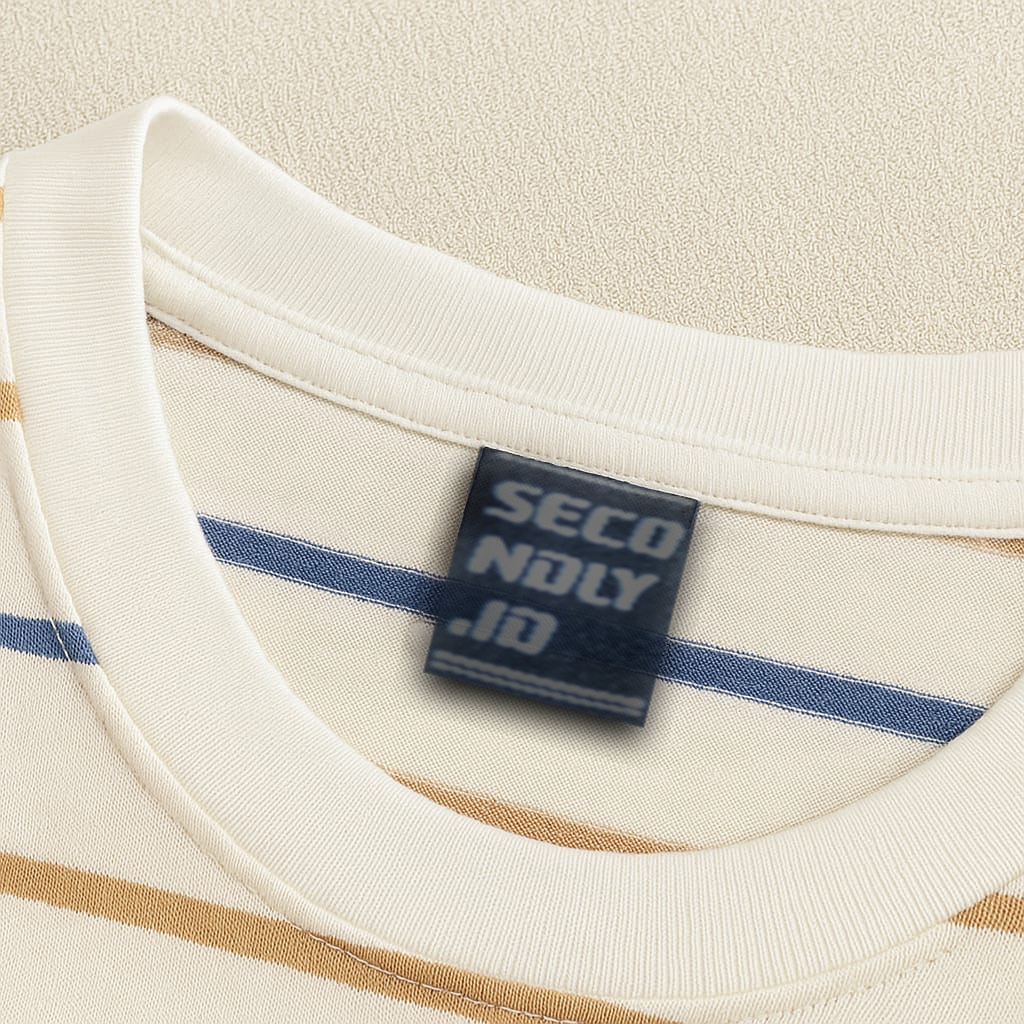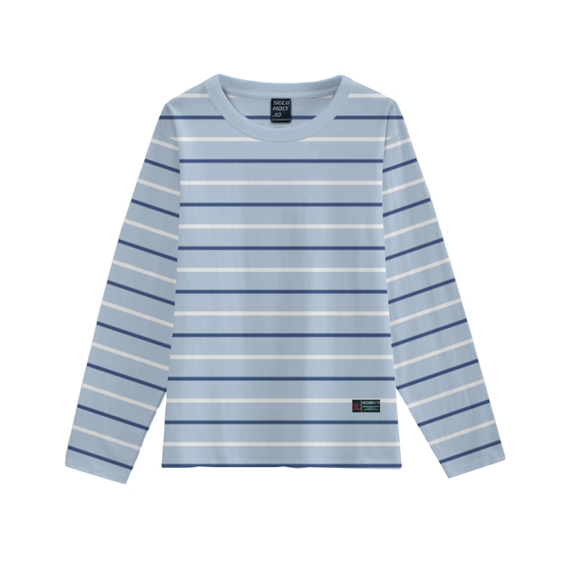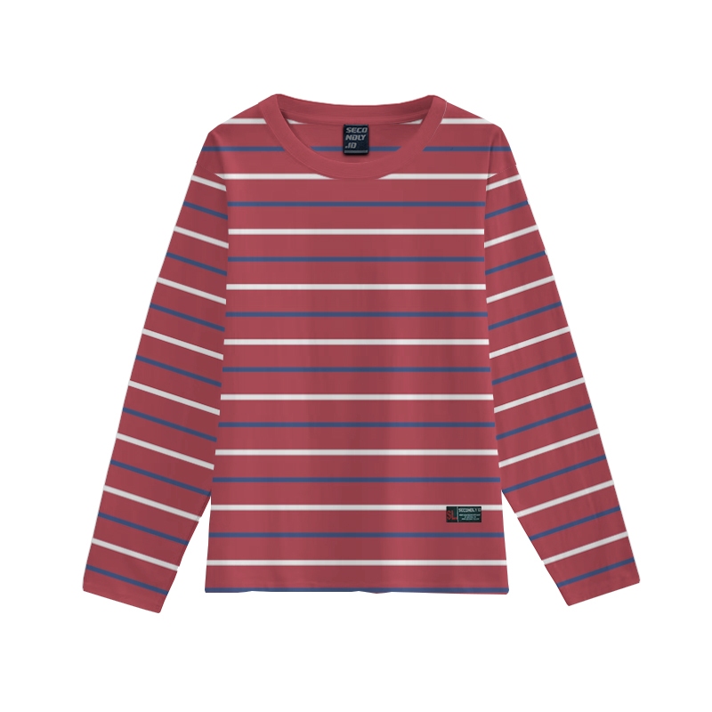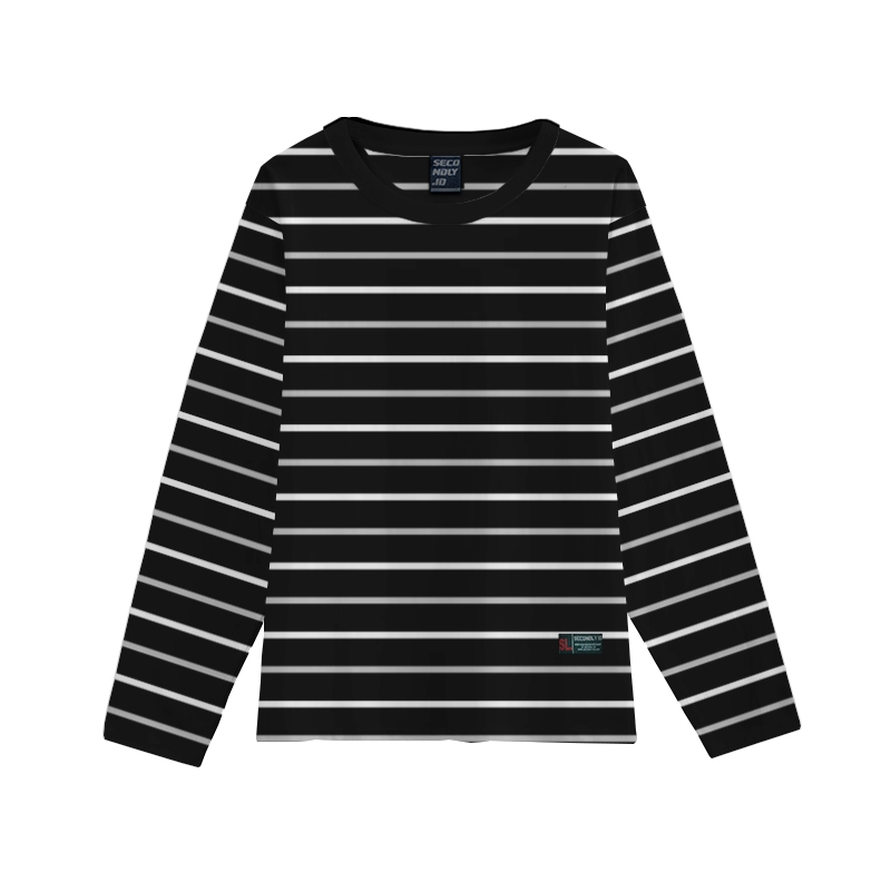 SECONDLY.ID Kaos Salur Lengan Panjang Wanita Tshirt Women Three Tone Medium Stripe Cotton 24s