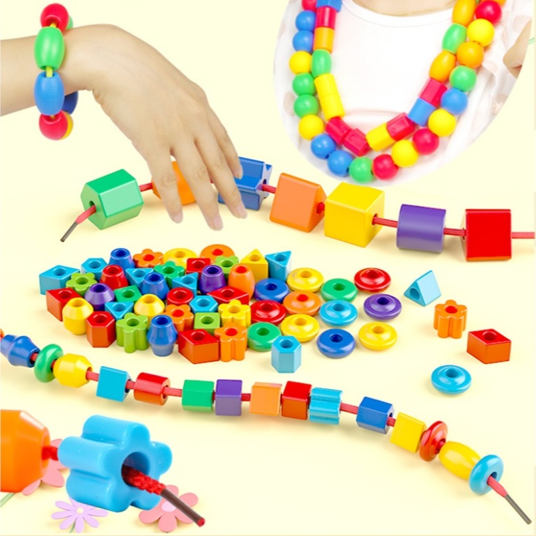 WISEHAWK Beads Montessori Edukasi Mainan Meronce Manik Tali Primer Mainan Blok Sekrup Plastik Untuk Anak