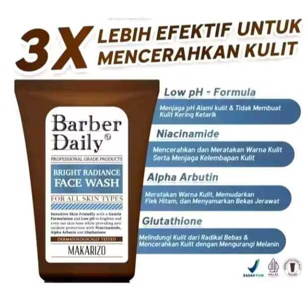 MAKARIZO - BARBER DAILY FACEWASH BRIGHT & ACNE (100 ml) / Sabun Cowok Barber Daily Face Wash