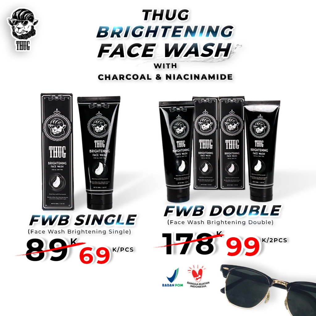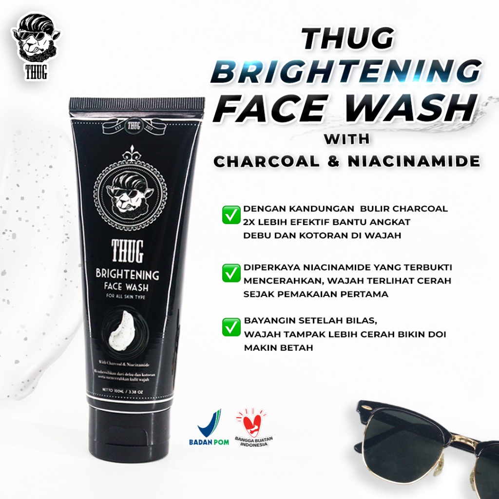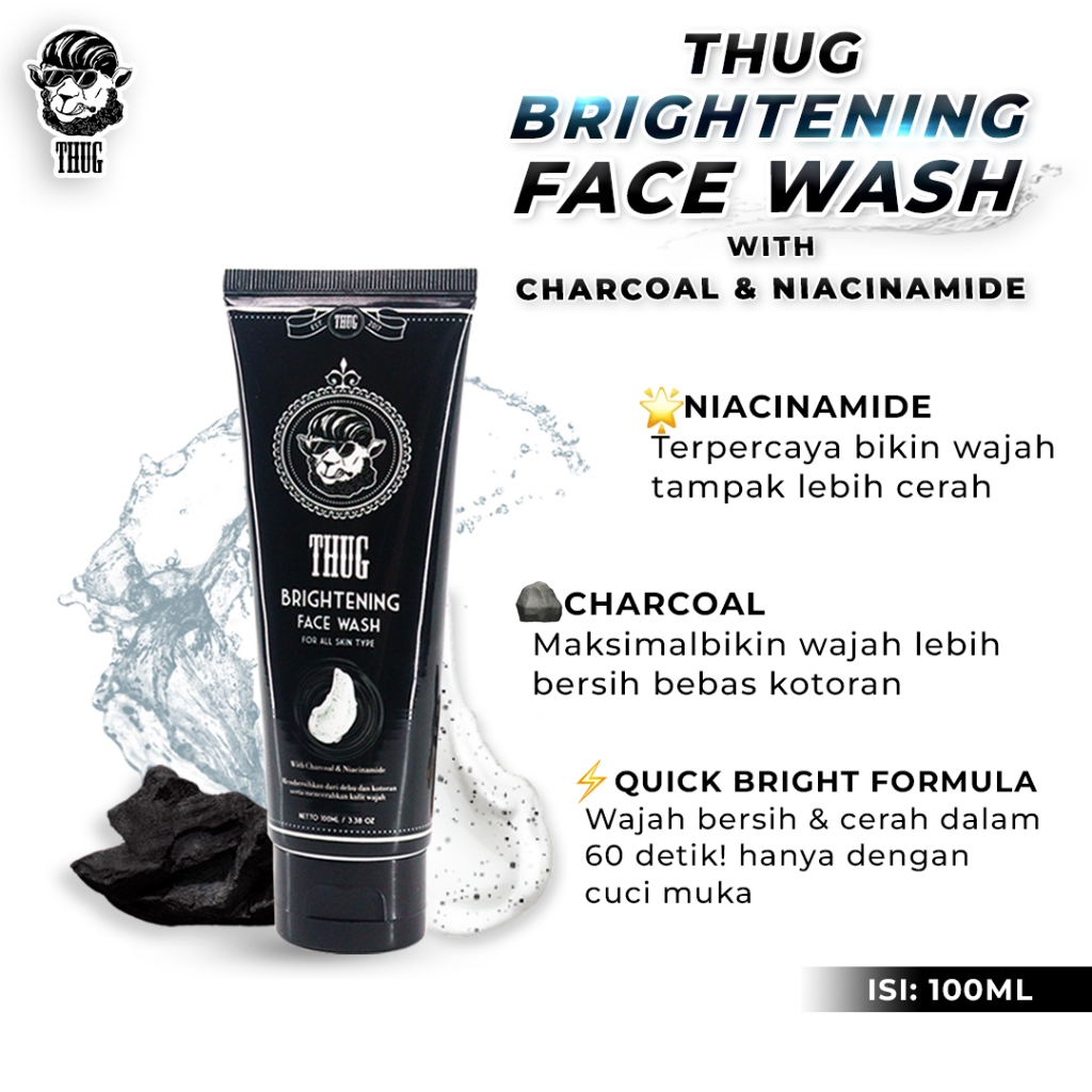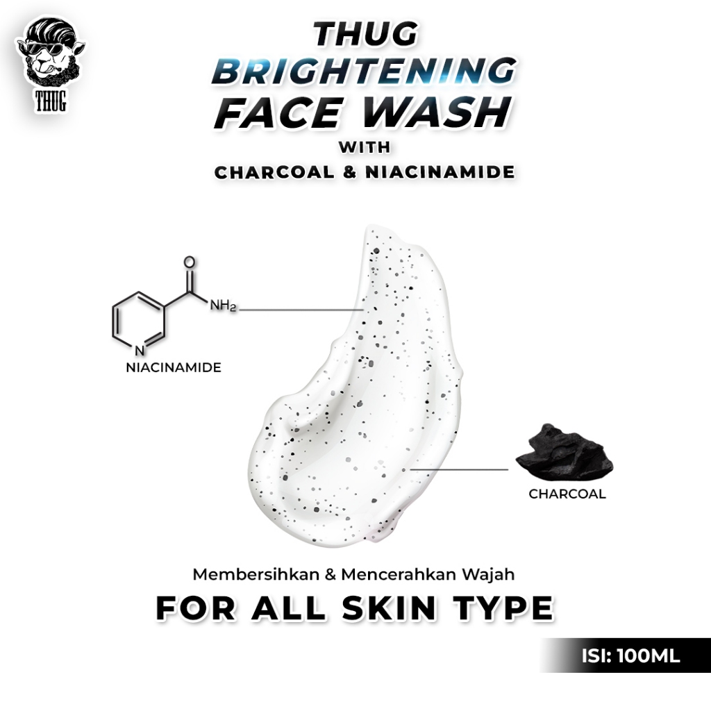 Thug Face Wash Brightening 100ml with Charcoal & Niacinamide 1/2 Pcs Membersihkan dan Mencerahkan Wajah Sabun Cuci Muka