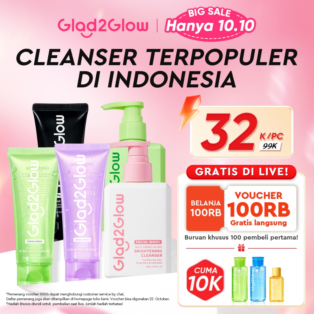 Glad2Glow Facial Cleanser Series-Facial Wash Low PH Gel Centella Mencerahkan Pencerah Wajah Anti Jerawat Penuaan Hilangk