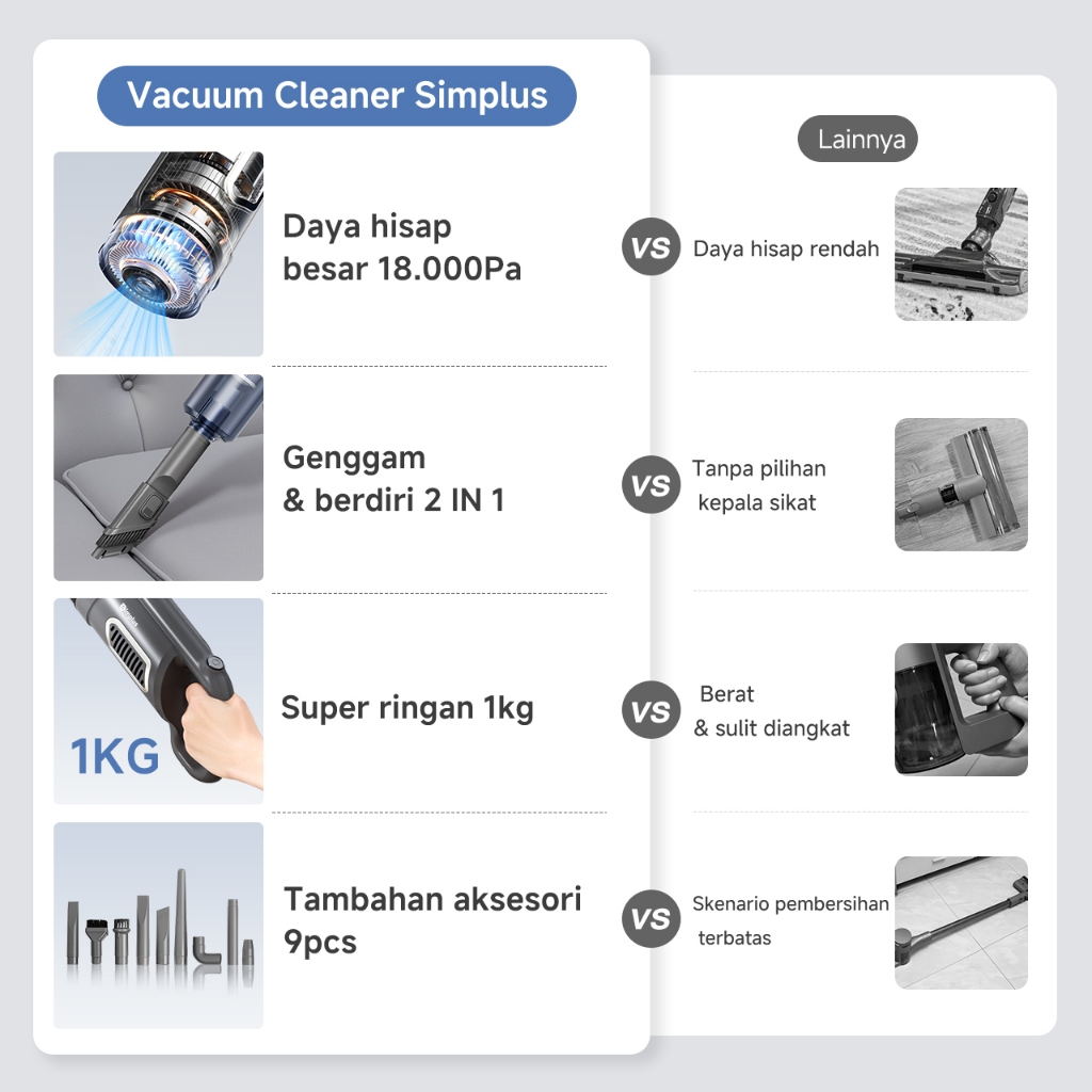 Vacum Penyedot Debu Modern 2024 Simplus Debu Tanpa Kabel Mobil Karpet Best Seller Genggam & Berdiri Aksesoris Pembersih