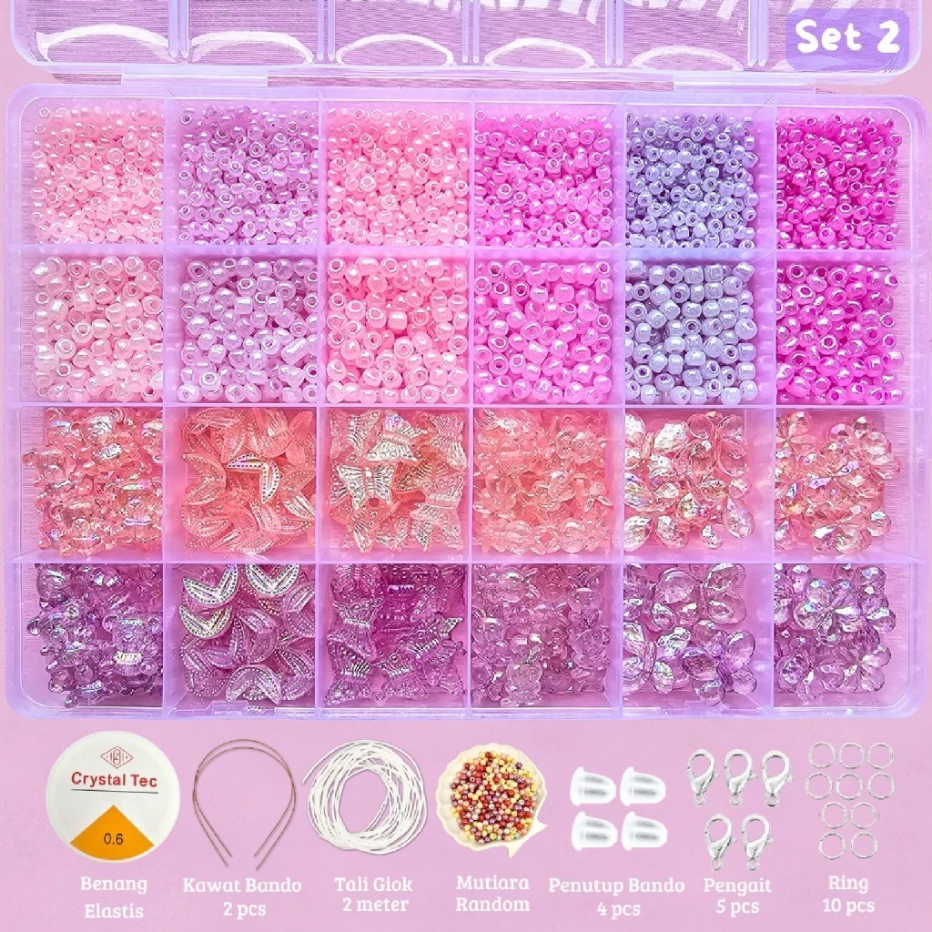 Manik Manik Pasir 1 Box - Manik2 Mote Payet Pasir Paket DIY (BONUS Benang Elastis + Tali Giok + Manik Random + Pengait U