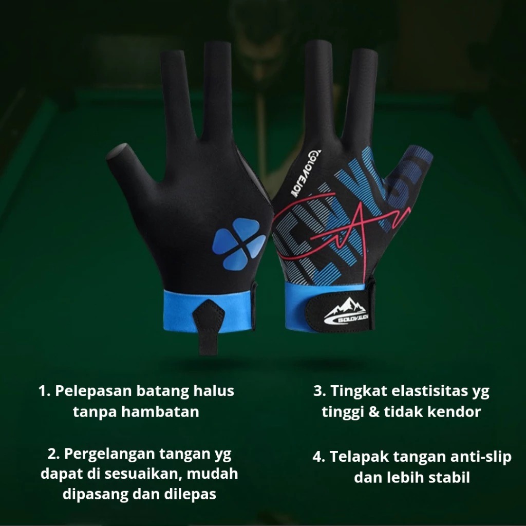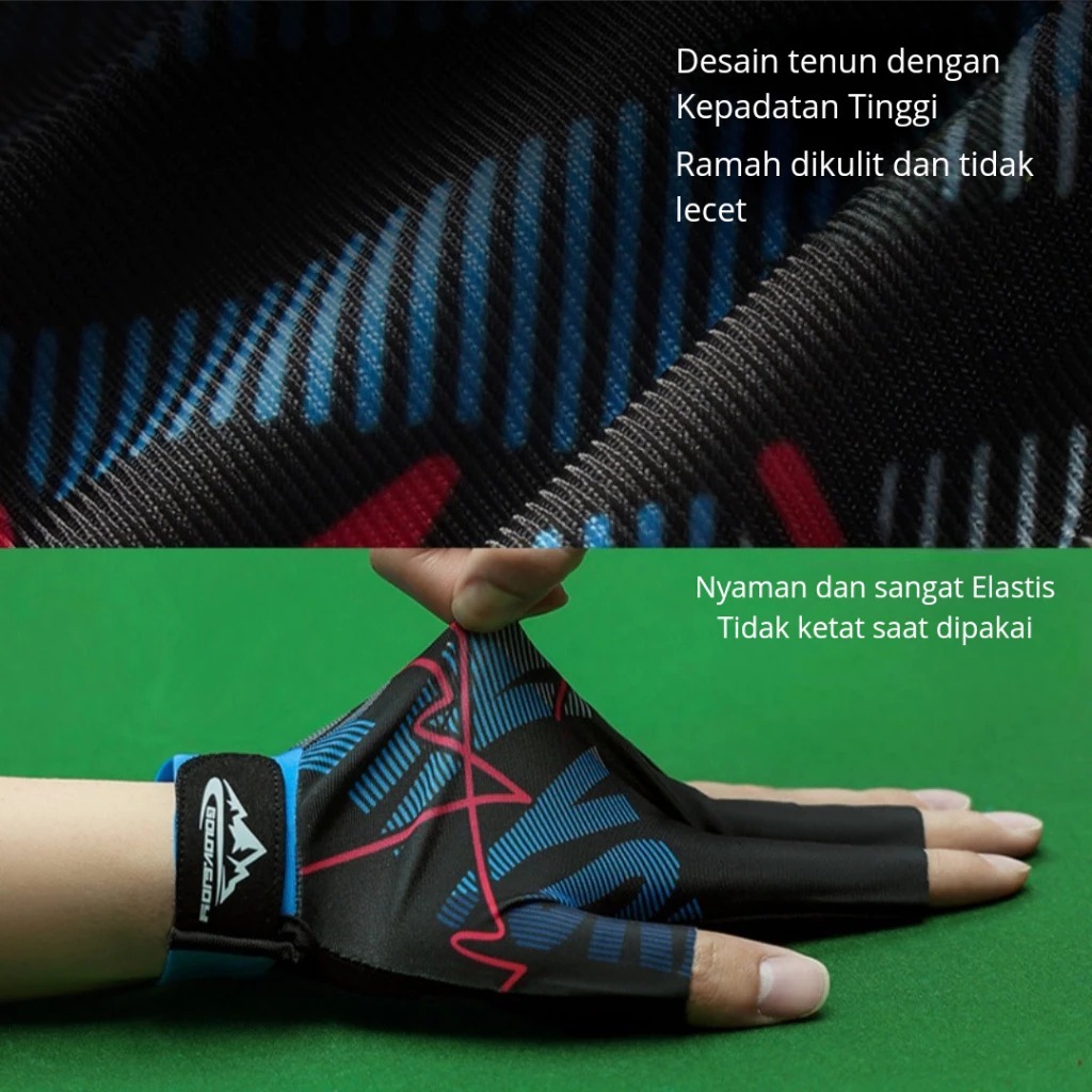 TDT - Glove Sarung Tangan Billiard Gloves Lycra Anti Slip + Velcro Sarung Tangan Billiard Pria Wanita