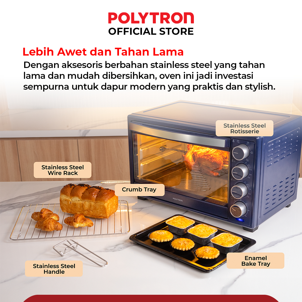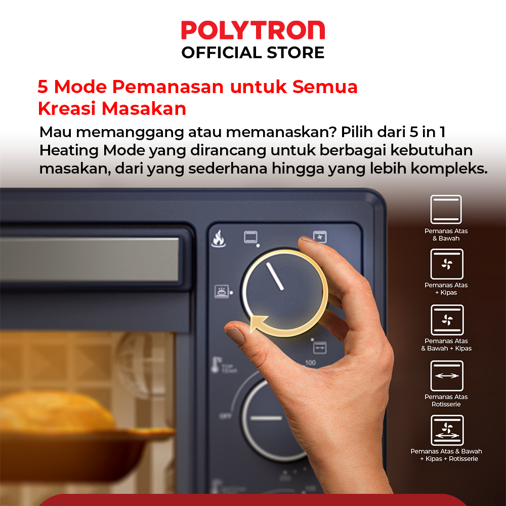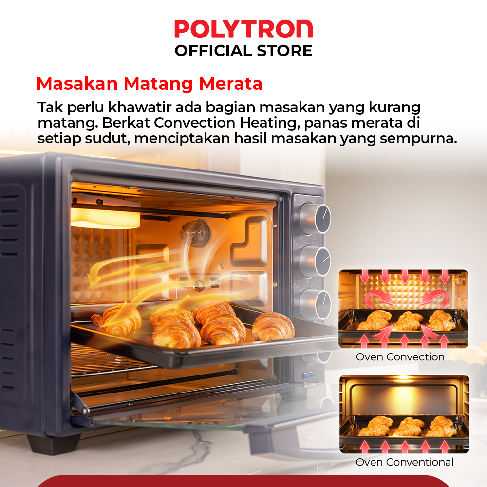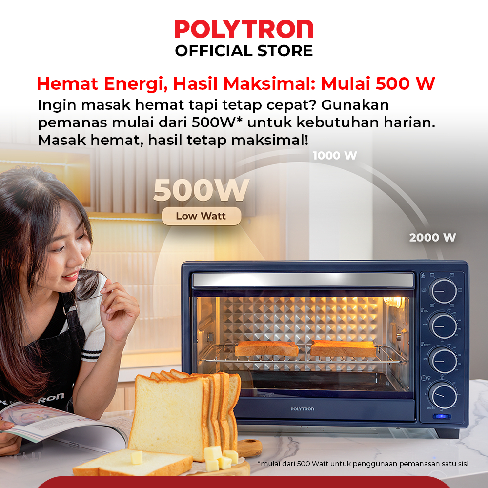 Oven Listrik Low Watt 33 Liter - PEO 33B1B / PEO 33B2B / PEO 33B2W POLYTRON Kitchenmate Gratis Ongkir