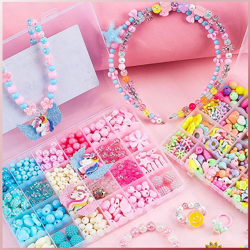 DIY Aksesoris Kotak / Mainan Kreatifitas Anak/ Meronce Manik-Manik Gelang Kalung