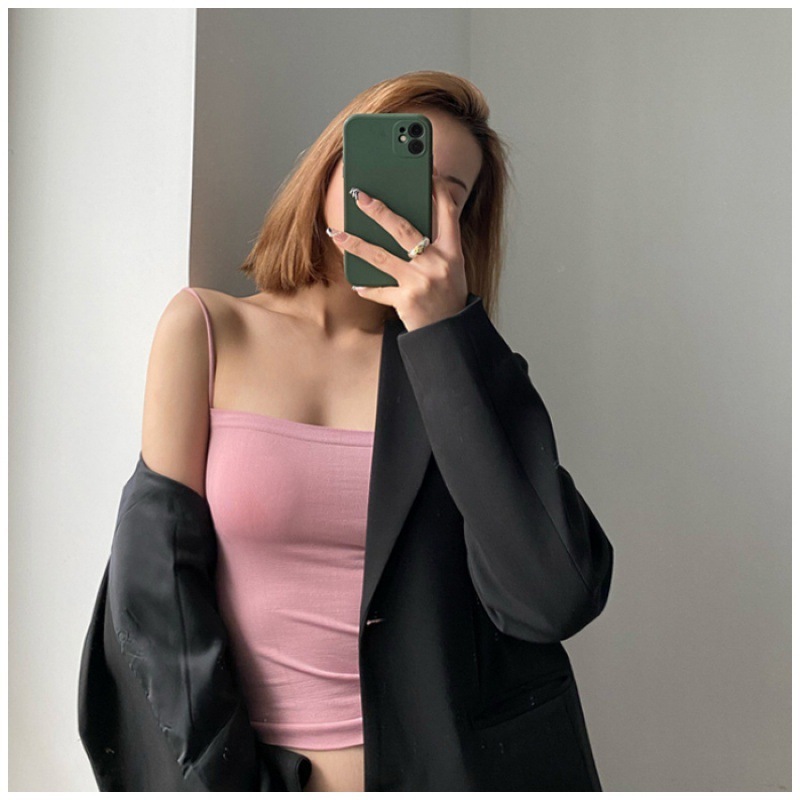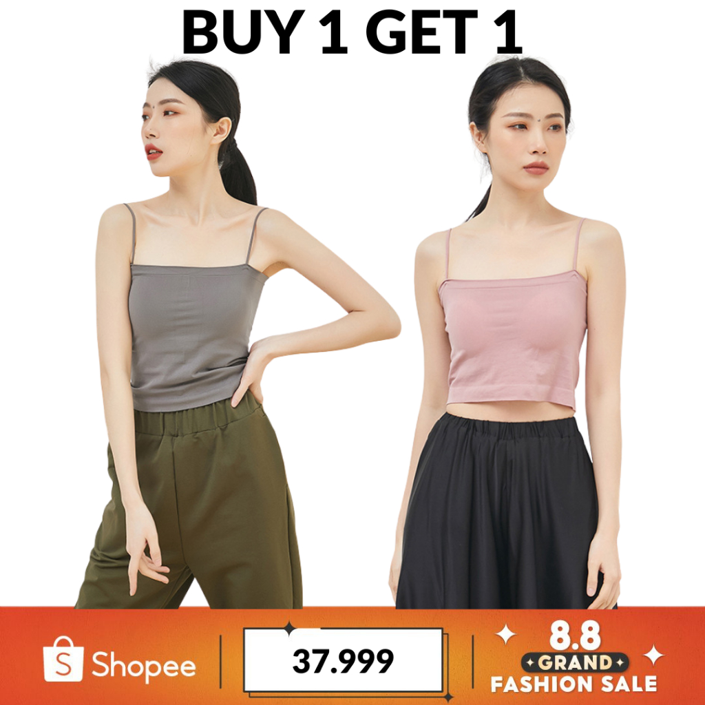 Toko fashion BUNDLE BELI 1 GRATIS 1 Tank top Basic Wanita Square Spaghetti Crop Top Polos BR513
