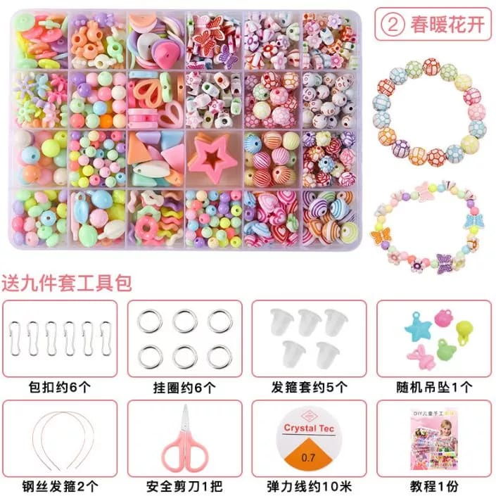 Mainan Edukasi Kreatifitas Anak Meronce manik /mute /pernak pernik PLUS TALI & KOTAK BESAR 24 SEKAT/KOTAK BUNGA Gelang /
