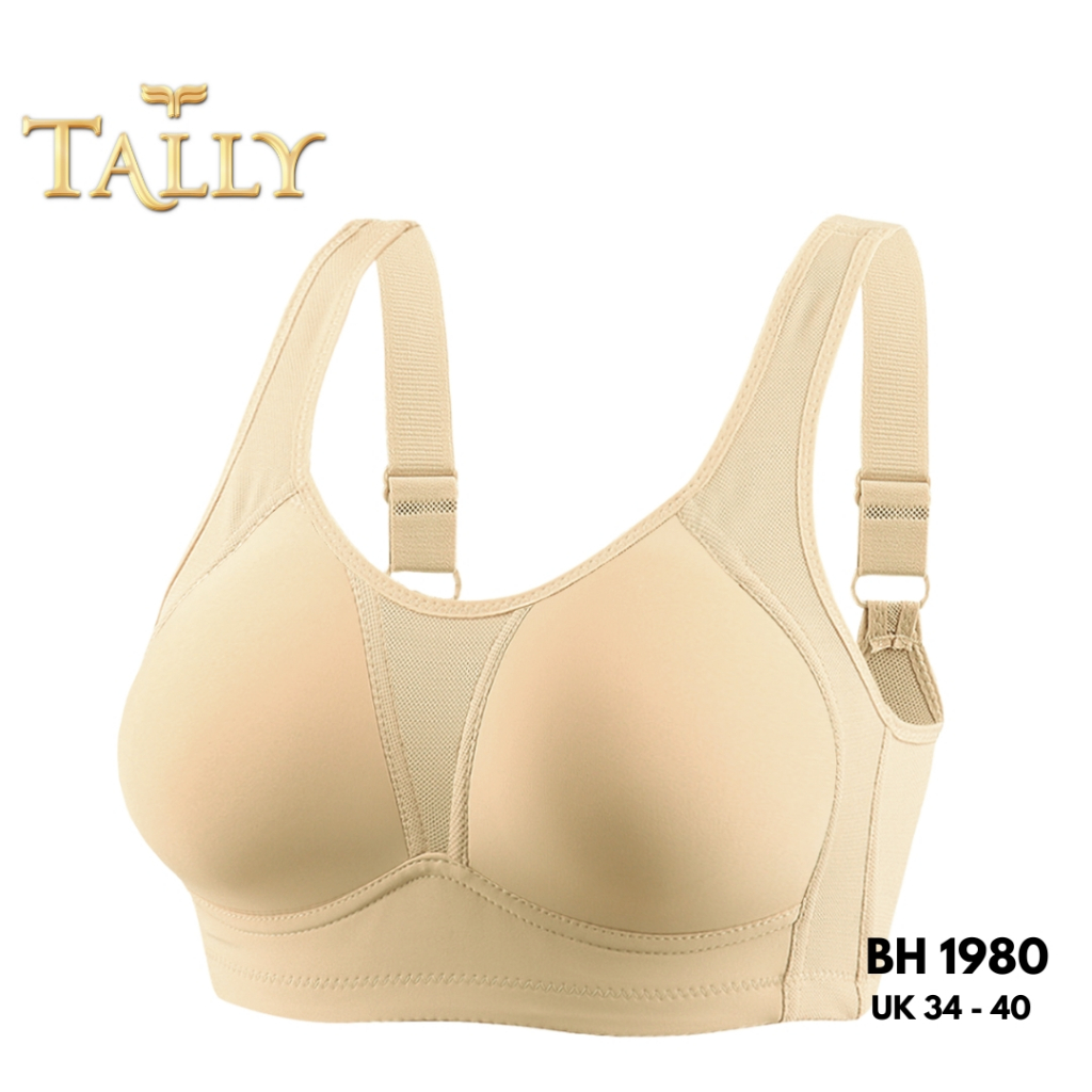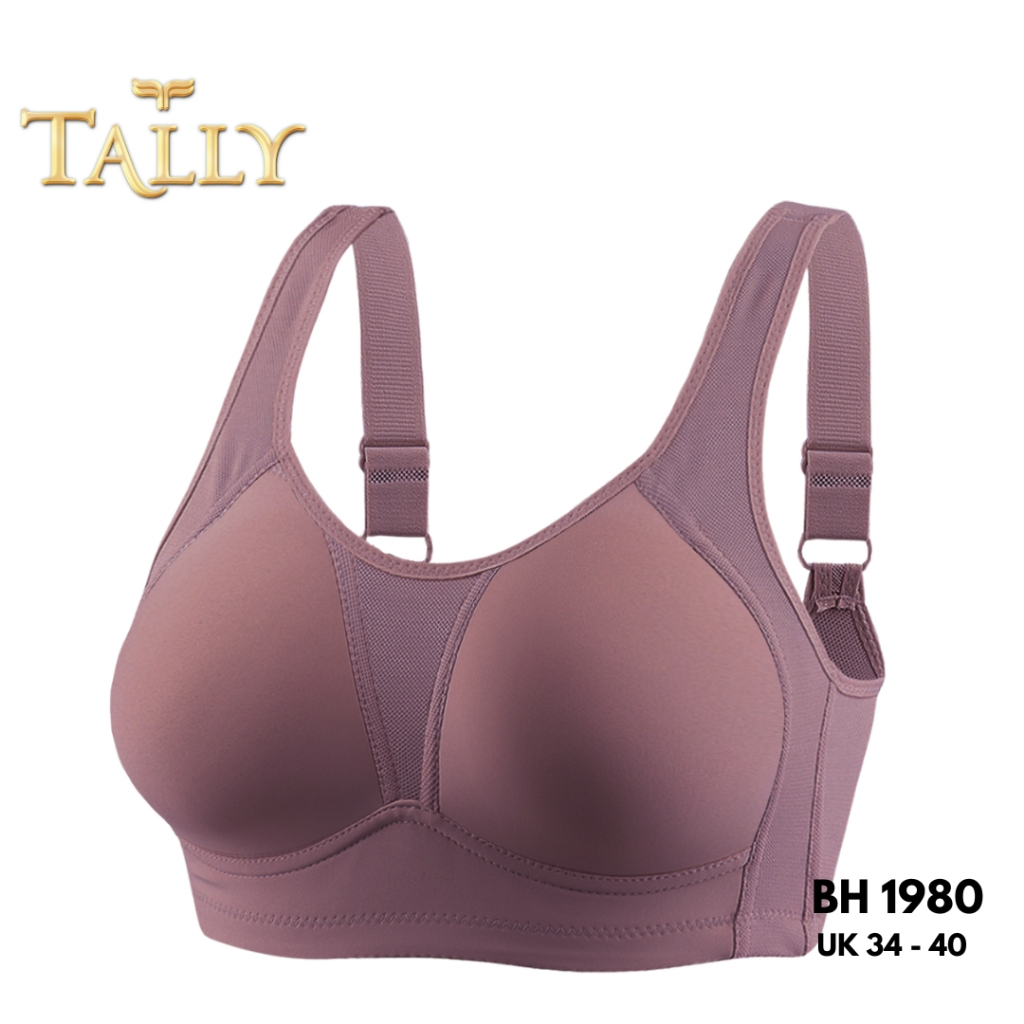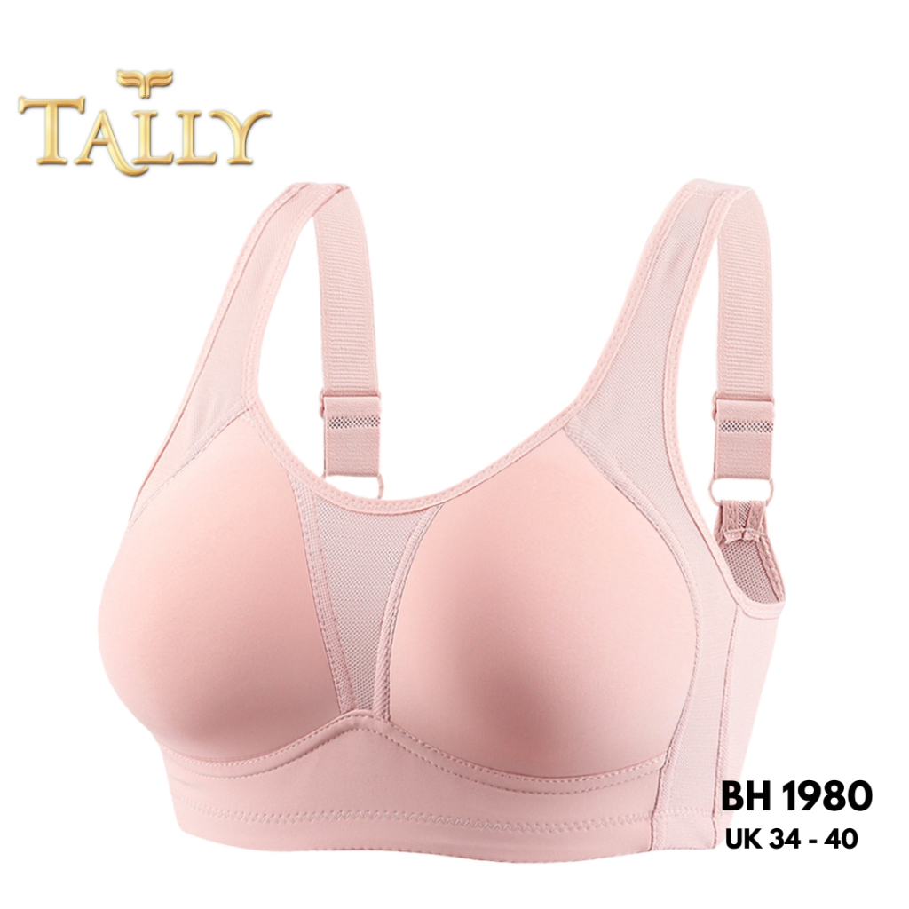 TALLY BH-1890 Bra Wanita Tanpa Kawat Busa Tipis Bahan Katun Pori CUP B - C Kait 3 Breathable Bra Pakaian Dalam Wanita Lembut dan Nyaman Dipakai