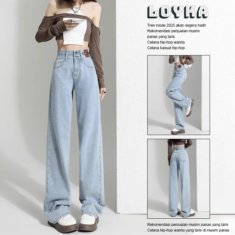 Loyka Highwaist Kulot Loose Jeans Wanita Korea Straight Celana Jeans Wanita Kekinian