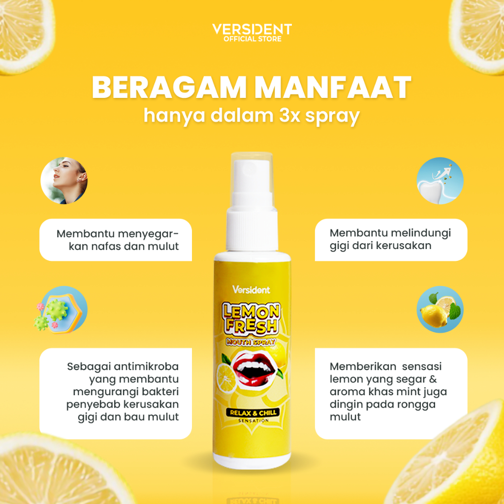 Versident Lemon Fresh Mouth Spray - Penghrum, Pewangi & Penyegar Nafas Mulut Rasa Lemon Halal BPOM