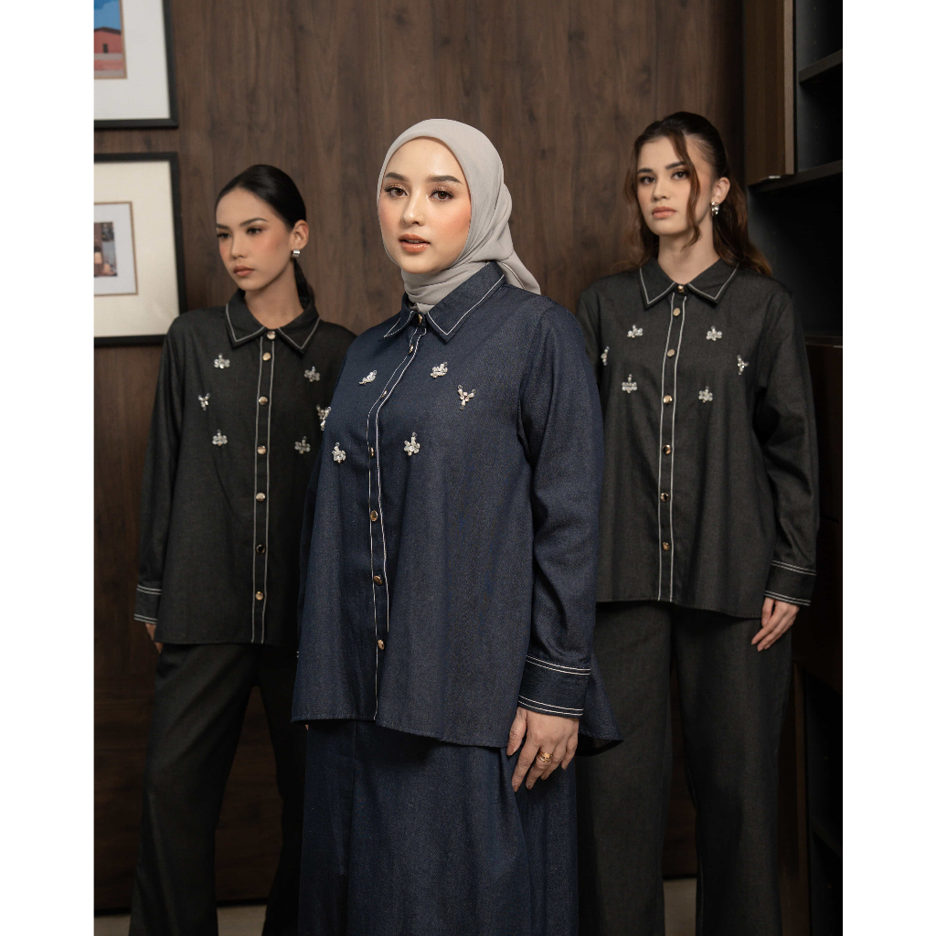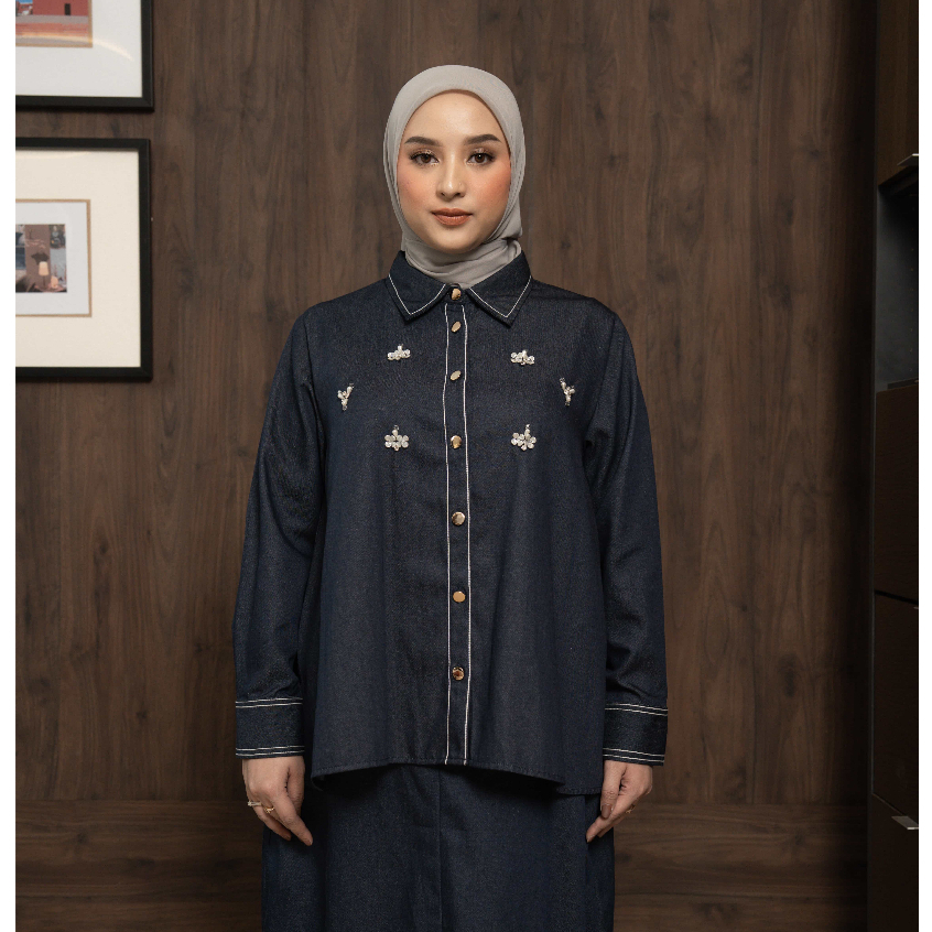 Mayoutfit x Dinan Fajrina Vanisha Shirt | Kemeja Denim Wanita Basic Aksen Payet Beads