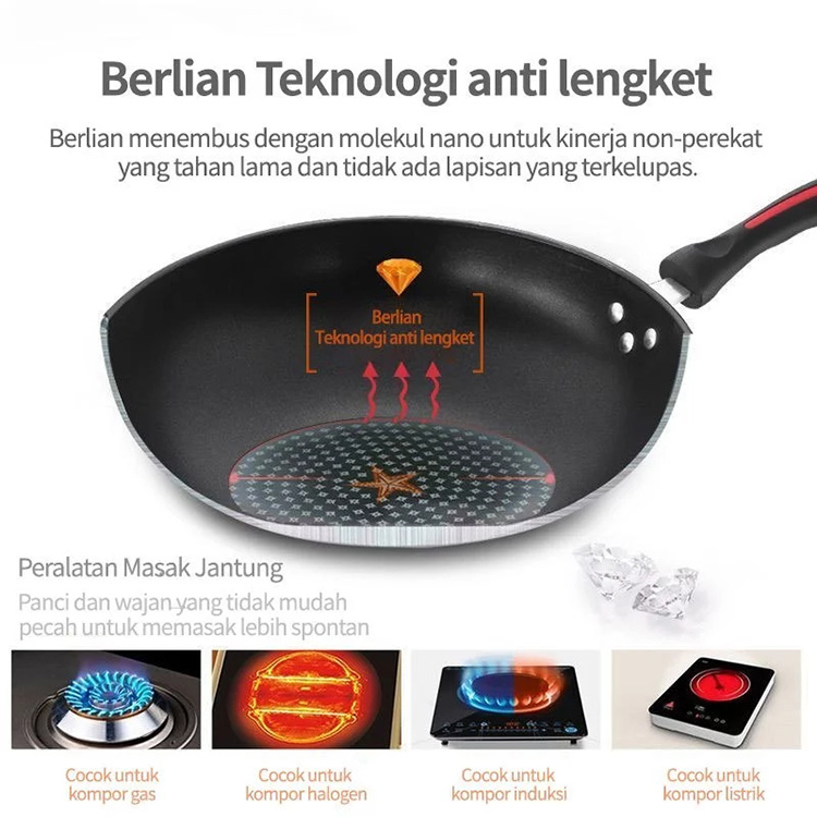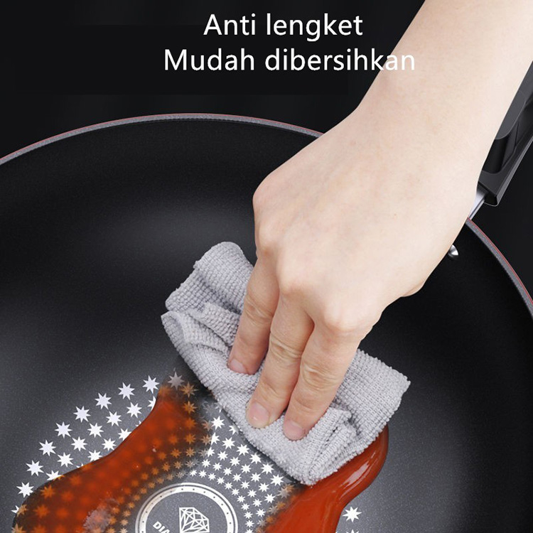 Diamond Wok Pan Tutup Kaca Wajan Penggorengan Anti Lengket Batu Medis Ukuran 32cm | Wokpan dengan tutup kaca
