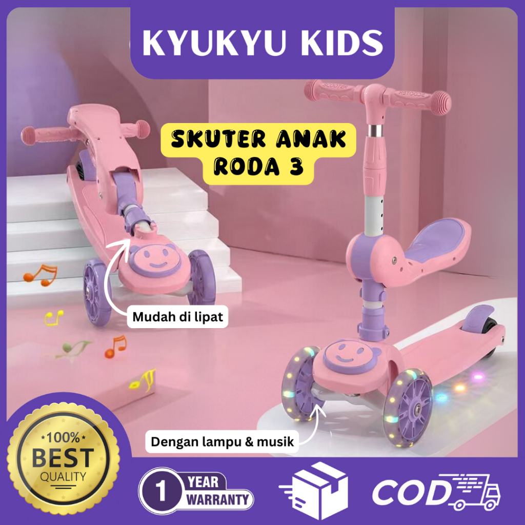 GEEK - Kyukyu Kids [GARANSI 1 TAHUN] Skuter Anak Roda 3 Mainan Scooter Otoped Ada Lampu, Musik