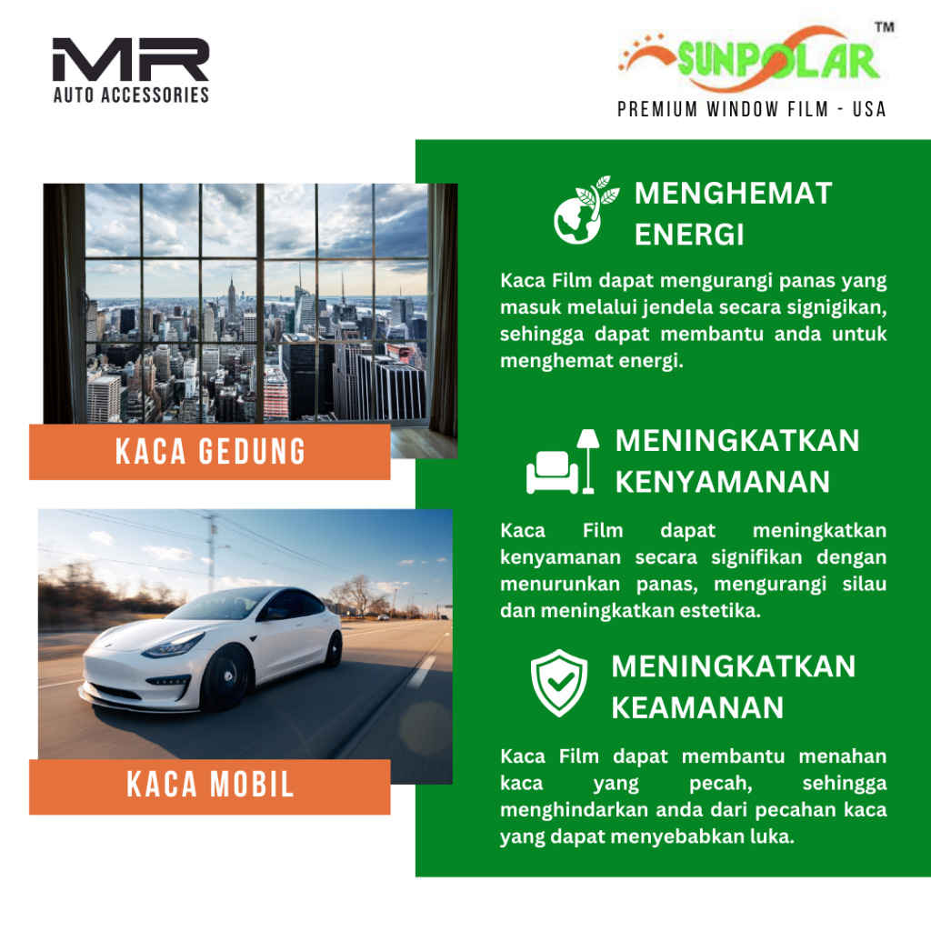 Kaca Film Mobil Hitam / Kaca Film Jendela Rumah Riben / Kaca Film Premium Sunpolar USA Meteran