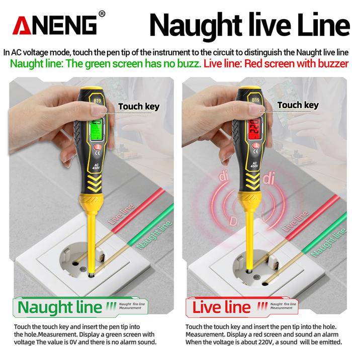 Aneng B19 Digital Tespen 30-1000V Voltage Detector Buzzer Alarm Non-Contact Test Screwdriver Phillips