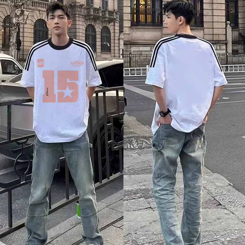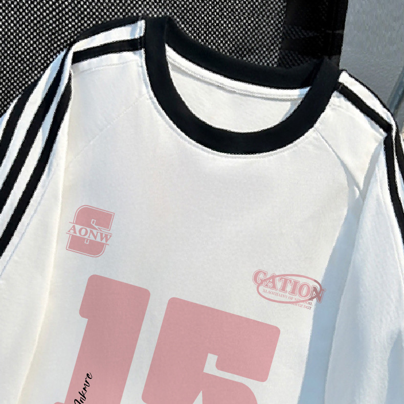 Baju Kaos Couple pasangan oversize Kaos stripe Raglan '15' Pink Kekinian - Kemeja pria lengan pendek premium Jersey streetwear