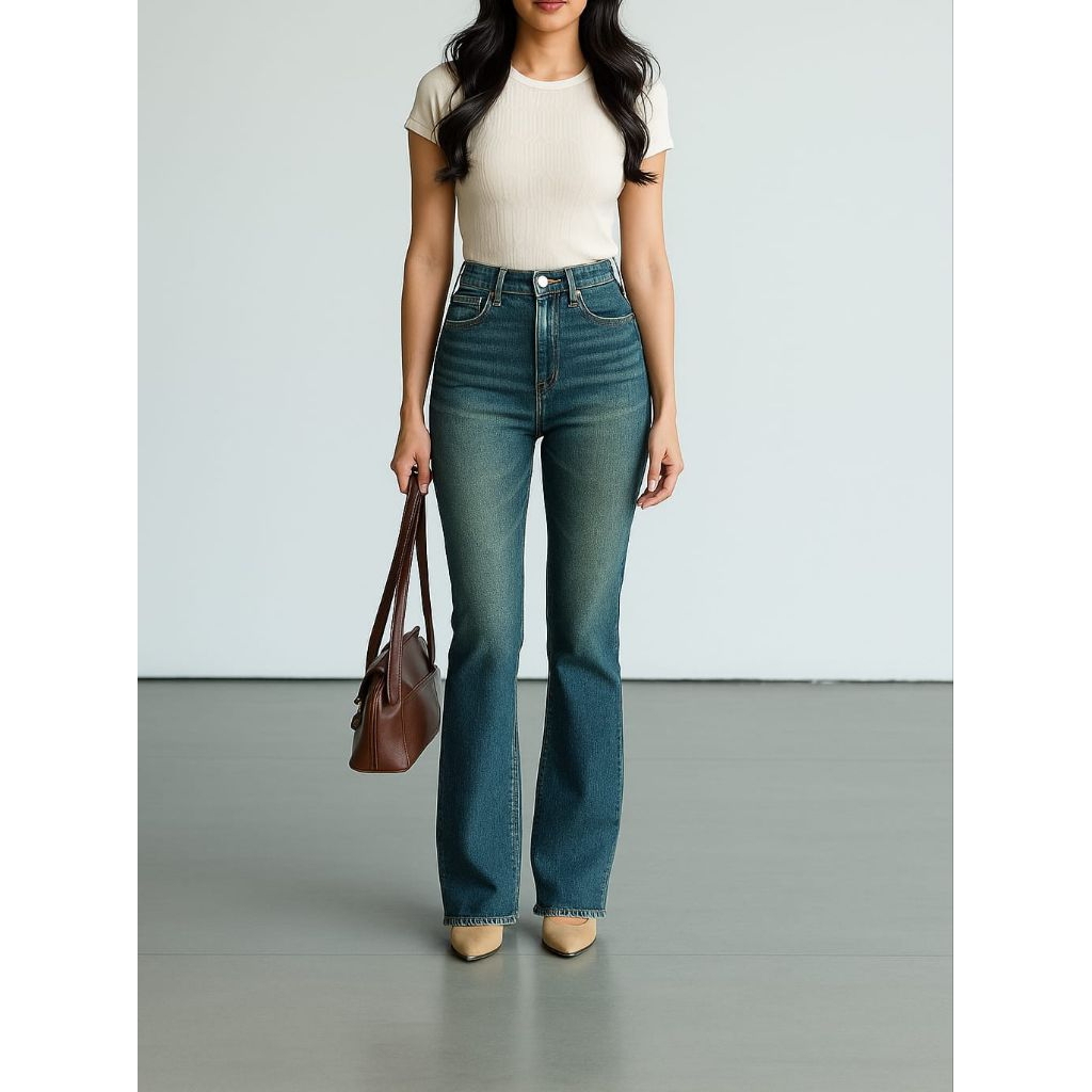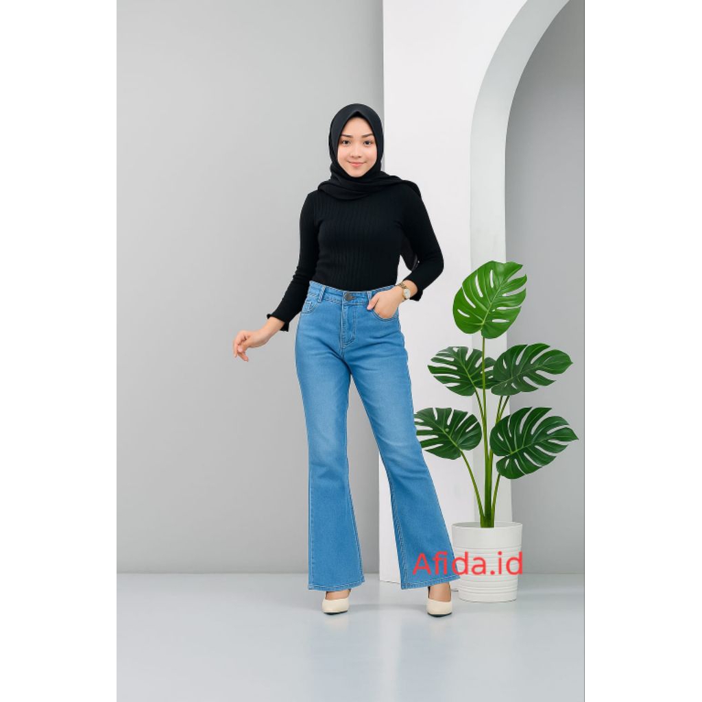 Highwaist Cutbray Jeans Wanita - Celana Panjang Denim Cutbray Hitam Melar Nyaman Kaki Basic