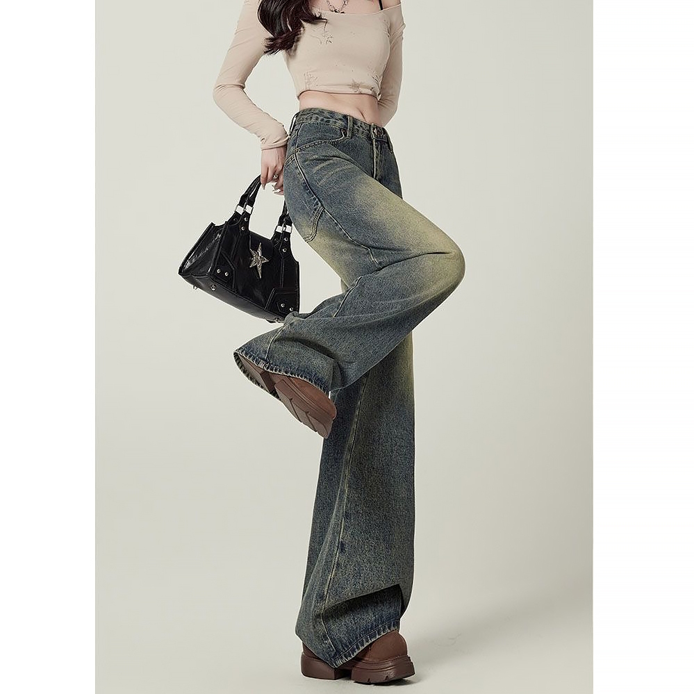 Keygirl Retro Kuot Highwaist Celana Panjang Wanita baggy Wide Leg jeans premium