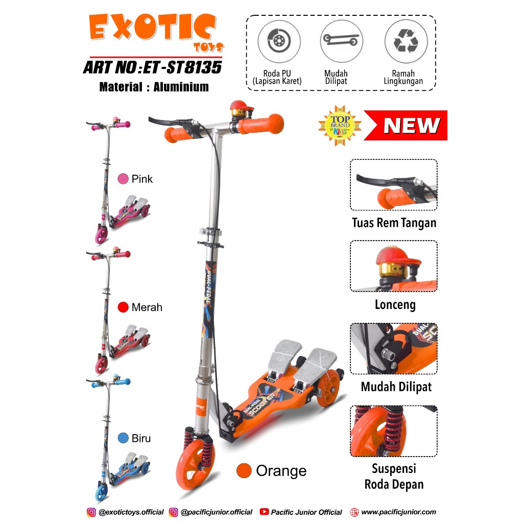 Skuter Injak Pedal Dobel Ganda Exotic ST 8135 ST 8132 (Musik dan Lampu) Otoped Sekuter Scooter Genjot Alloy Bisa Dilipat