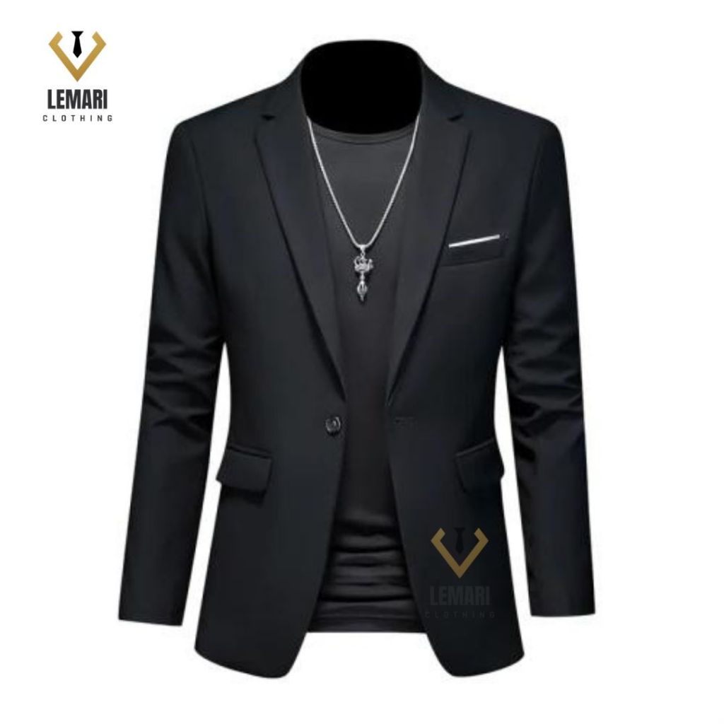 Jas Blazer Formal Pria Kancing Satu Slim Fit Premium Wisuda Wedding Casual MC Groomsmen Hitam