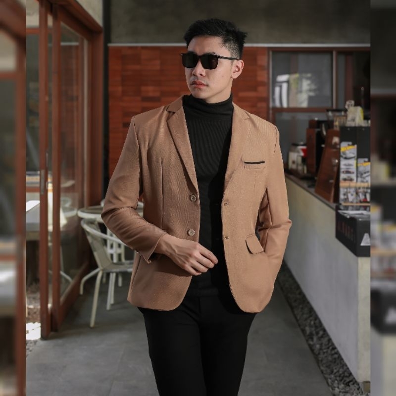 DVANDRA.ID Jas blazer mocca slimfit blazer pria coklat muda Formal Casual