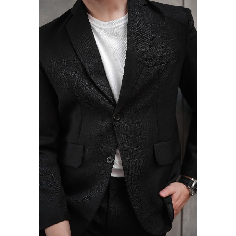 Jas Blazer Pria Hitam Polos Slimfit Formal Kerja Kantor Wisuda Bahan Semi Woll berkualitas terbaik